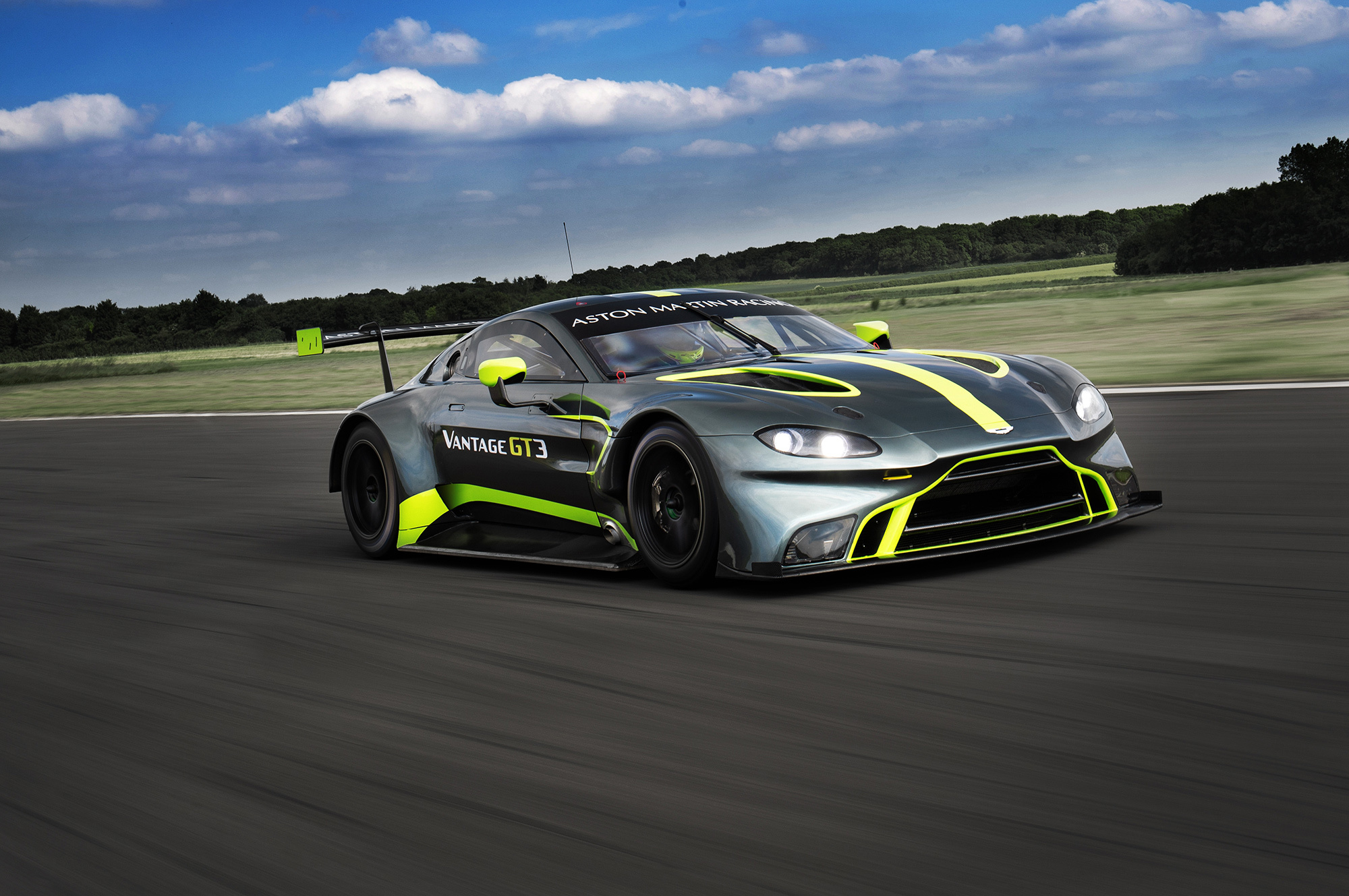 Гораздо больше известно о модификации Vantage GT3. От серийного Вантиджа осталось намного меньше деталей: британцы модернизировали силовую структуру, заметно расширили колеи и полностью заменили заводские наружные панели быстросъёмными из углеволокна. Четырёхлитровый двухнаддувный двигатель V8 форсирован до 542 л.с. и 700 Н•м (было 510 и 685 соответственно), а вместо восьмиступенчатого «автомата» используется секвентальная коробка передач Xtrac с многодисковым сцеплением Alcon. Тот же поставщик предоставил и тормоза, а вот настраиваемые амортизаторы (четыре положения) здесь от фирмы Öhlins. Заказы на Vantage GT3 пока не принимают ― его омологацию закончат к 1 марта 2019 года.