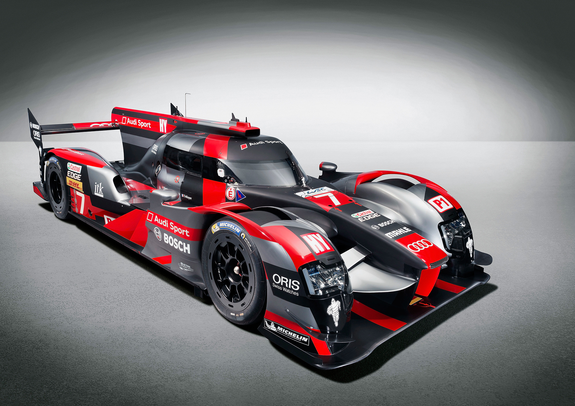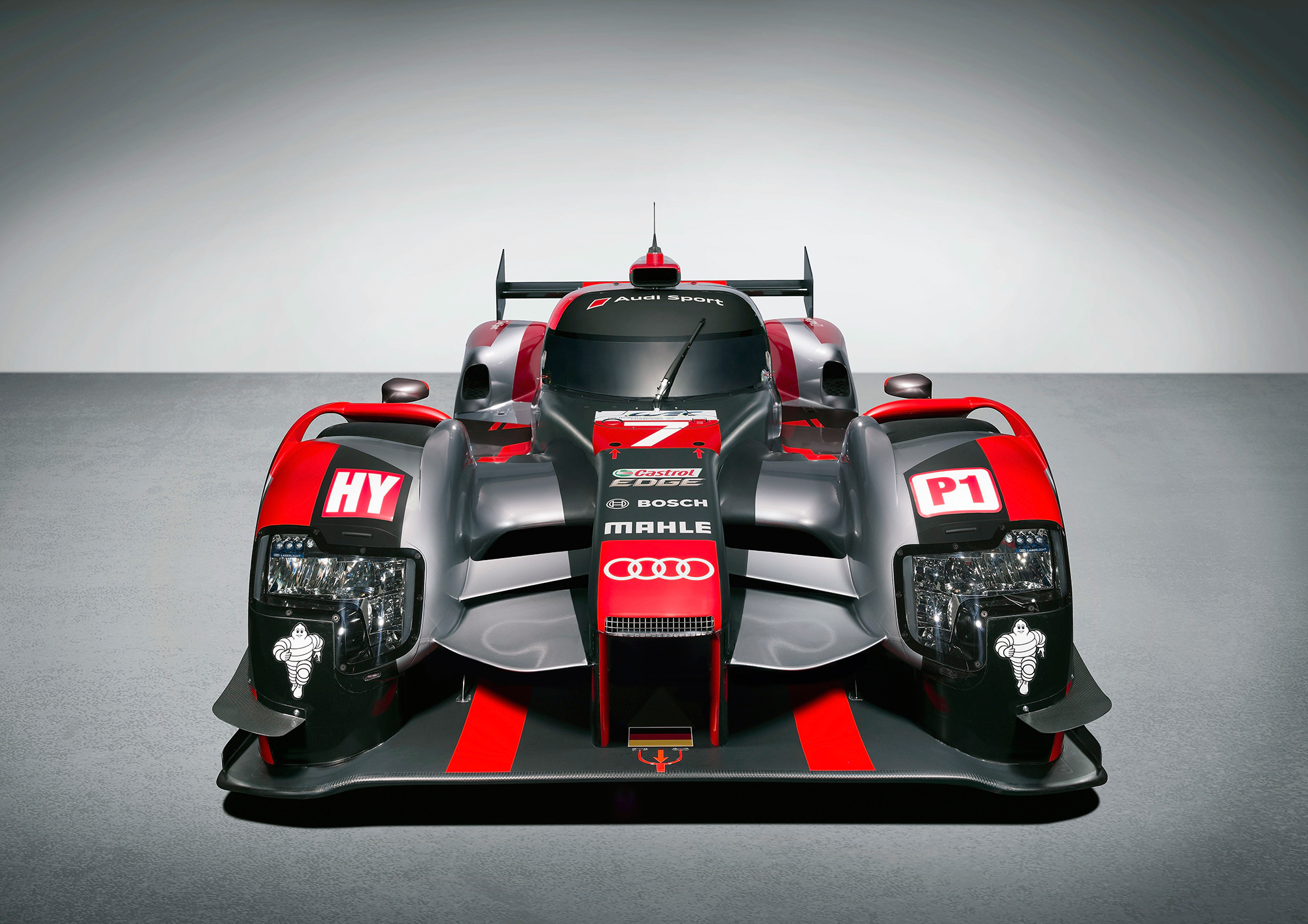 Переработанный прототип Audi R18 немцы показали в ноябре прошлого года, не раскрыв его характеристик. С тех пор машина заметно изменилась внешне, аэродинамика стала ещё лучше. О силовой установке теперь известно всё. Задние колёса гибрида приводит дизель V6 TDI 4.0 (514 л.с., 850 Н•м) с турбокомпрессором Garett. На передней оси находится электромотор-генератор MGU (Motor Generator Unit), который при торможении передаёт энергию в накопитель (литиево-ионную батарею). На разгоне ток течёт в обратном направлении, обеспечивая прибавку до 350 кВт (до шести мегаджоулей энергии на круге). Таким образом, суммарная мощность превышает 1000 л.с.