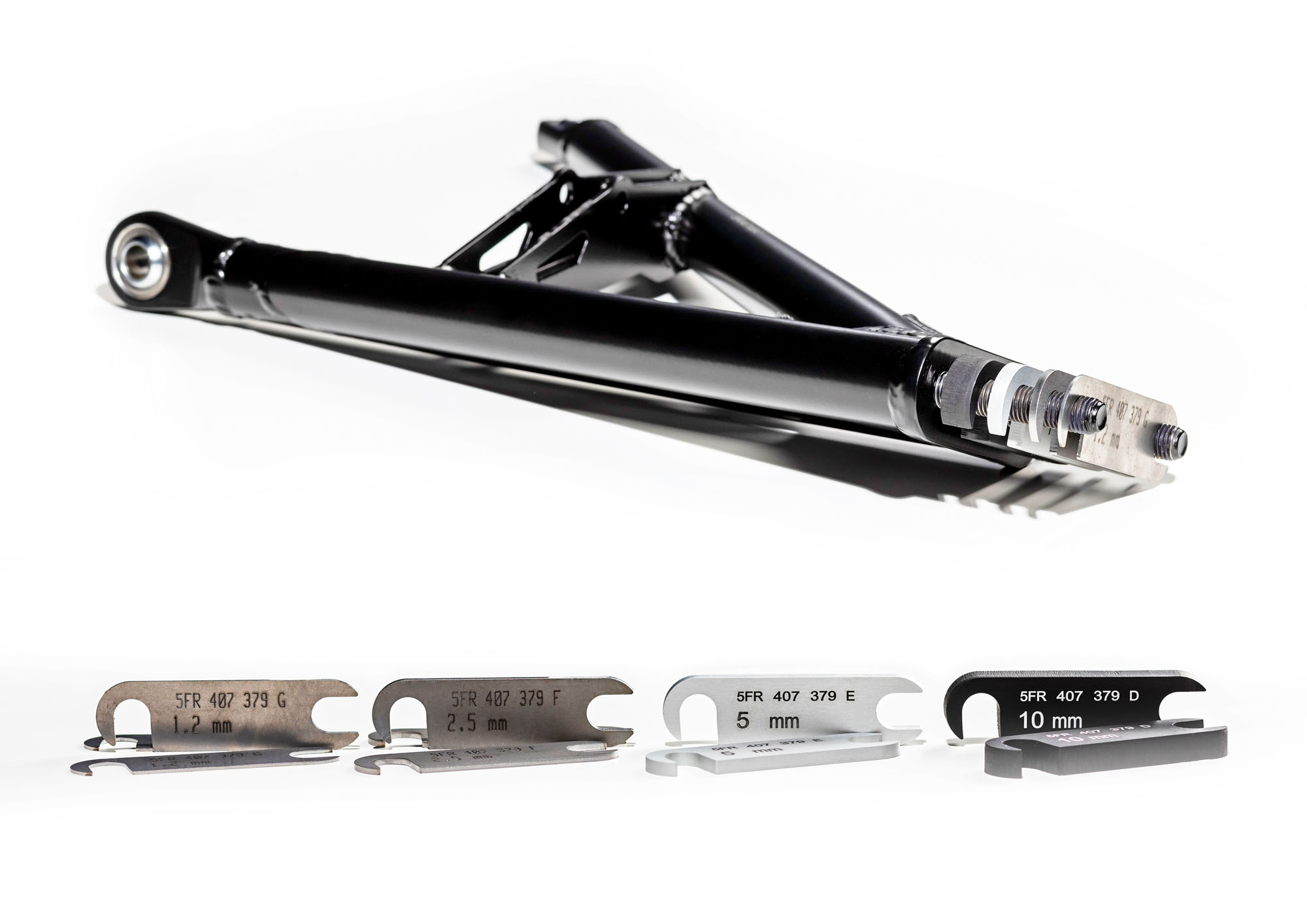 Спереди тут стоят особые поперечные рычаги для стоек McPherson с быстрой регулировкой развала (в боксах) за счёт замены металлических вставок (они показаны в коллаже выше). У задней четырёхрычажки имеются бесступенчатые регулировки клиренса, схождения и развала. Спереди стоит стабилизатор поперечной устойчивости с настройкой на девять уровней жёсткости, а сзади — на шесть (вернее, там в комплекте два сменных стабилизатора, с тремя регулировками у каждого). Ручная регулировка распределения тормозного усилия по осям — это само собой.