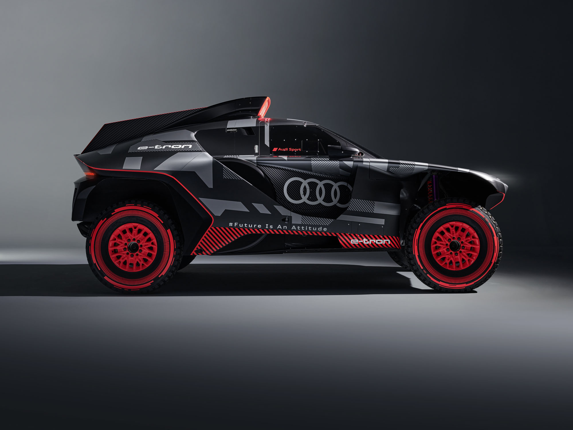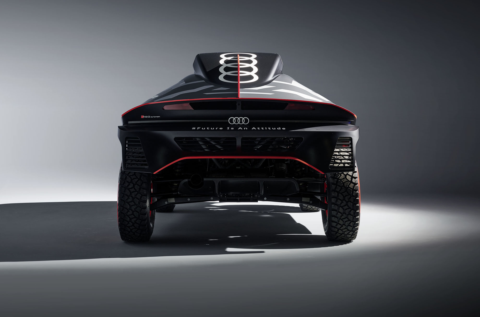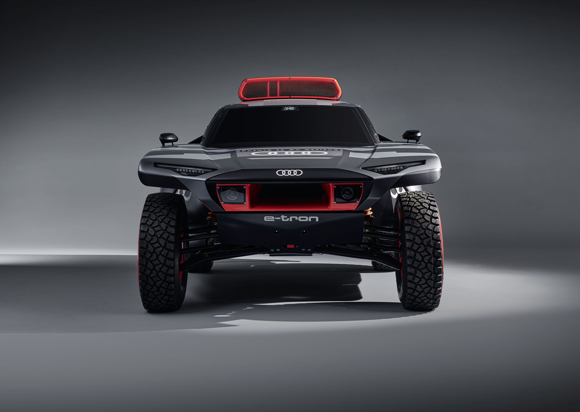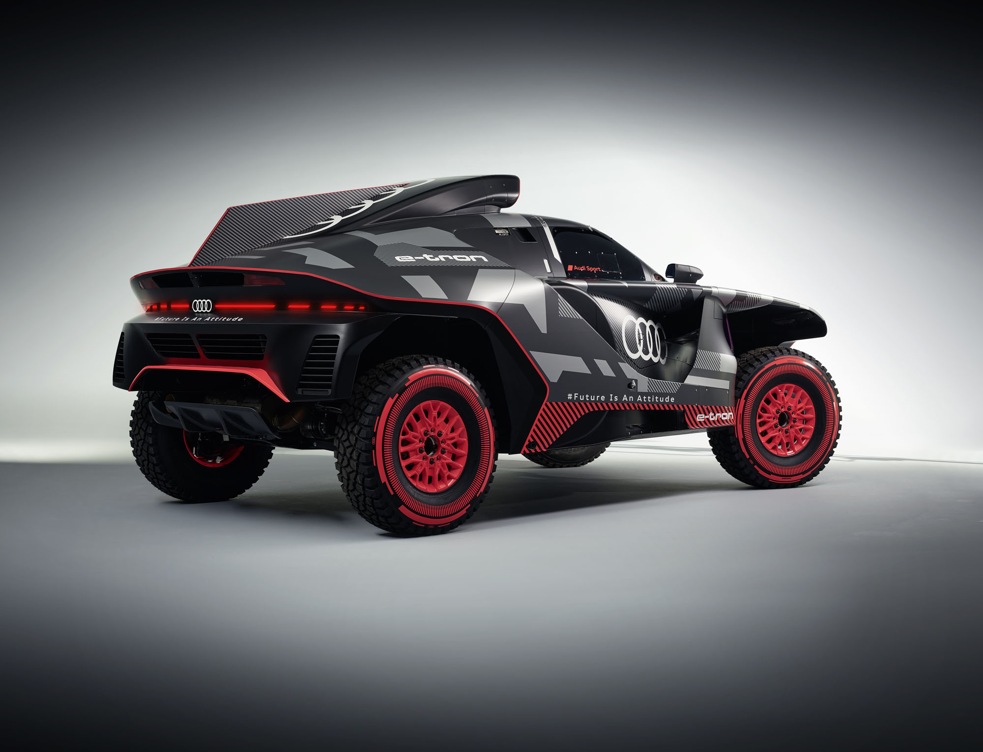 Управляющий директор Audi Sport GmbH и ответственный за автоспорт в Audi Юлиус Зеебах заявил: «Наш RS Q e-tron был создан с чистого листа в рекордно короткие сроки». И в эпоху постепенного отказа от ДВС именно электрической части модели было уделено основное внимание. Два электромотора совместно выдают тут 500 кВт (680 л.с.). Электроника играет роль виртуального межосевого дифференциала, постоянно перераспределяя тягу между колёсами ради наилучшей динамики в каждой конкретной ситуации.