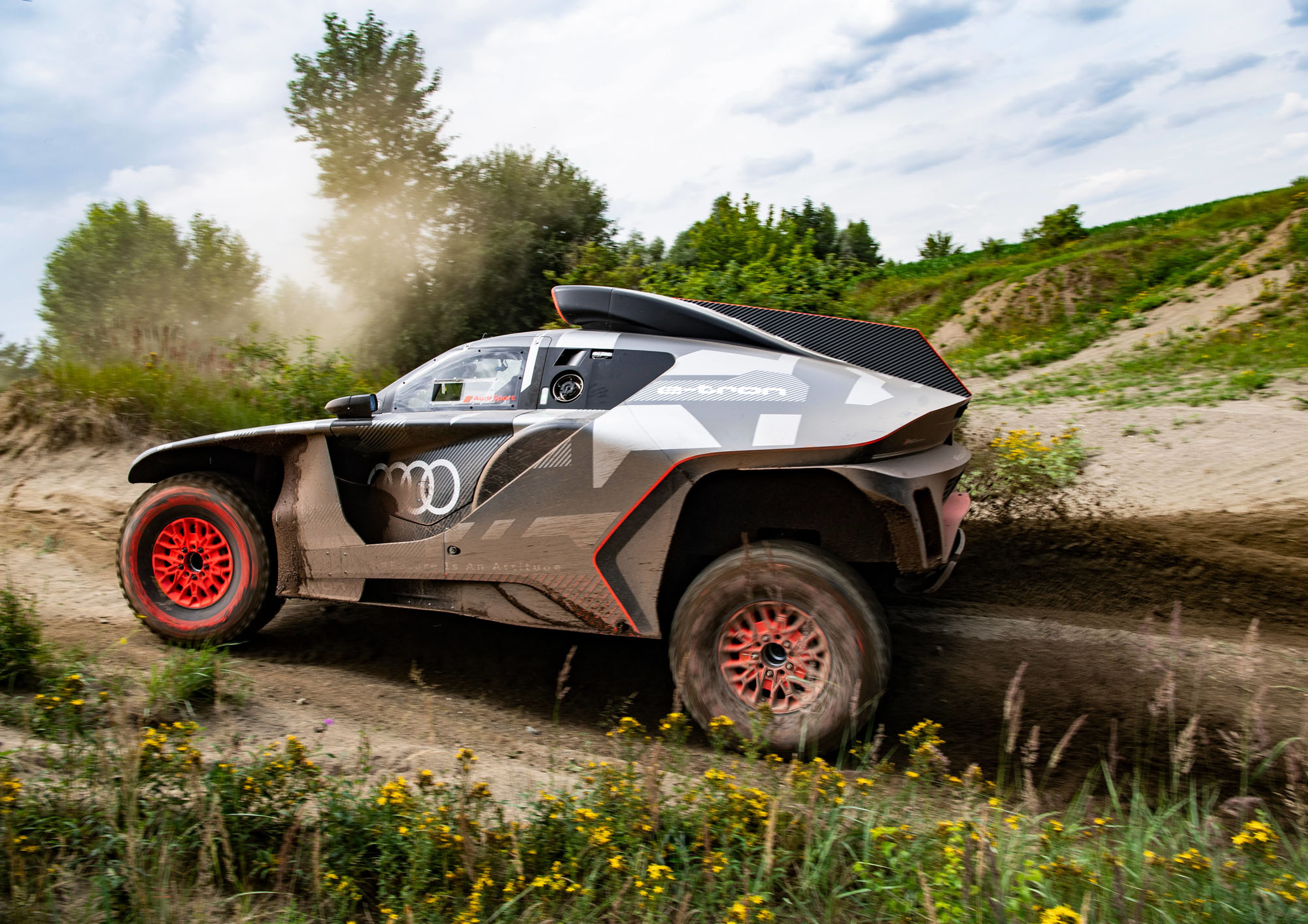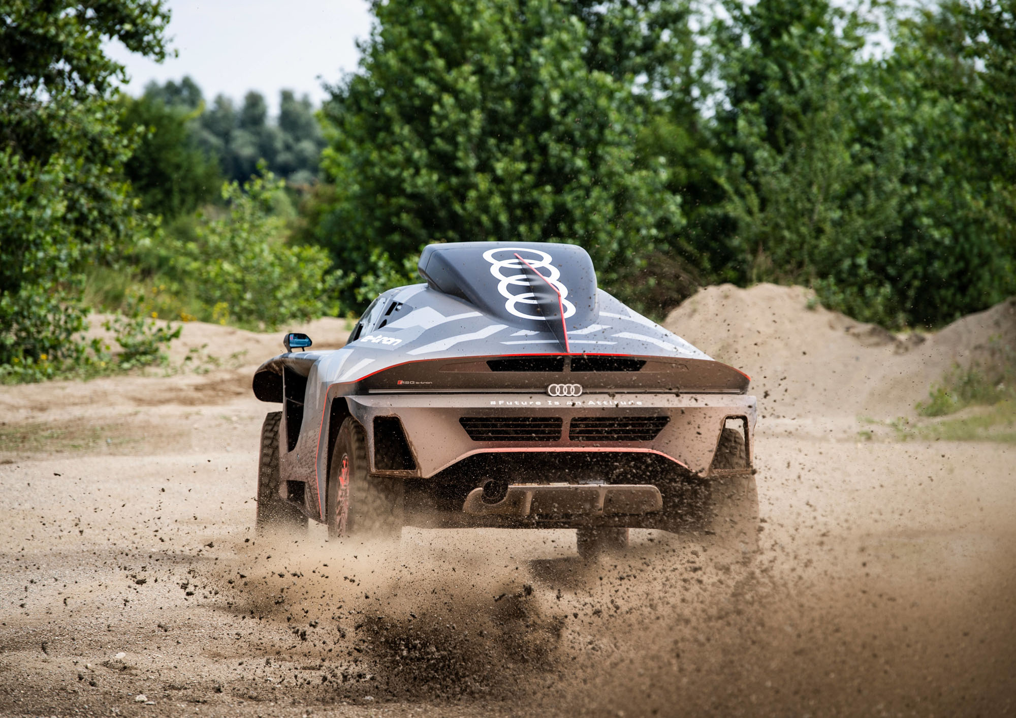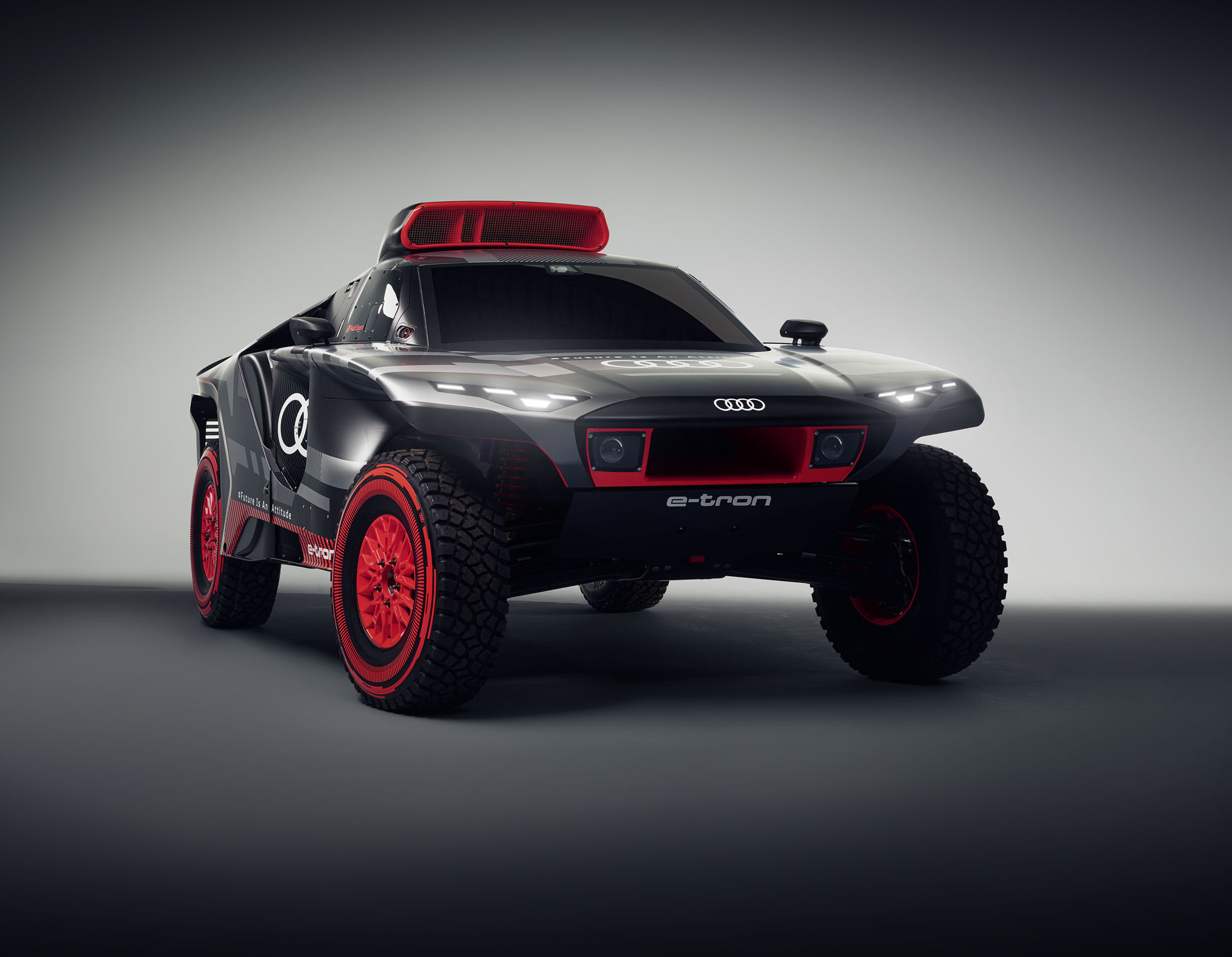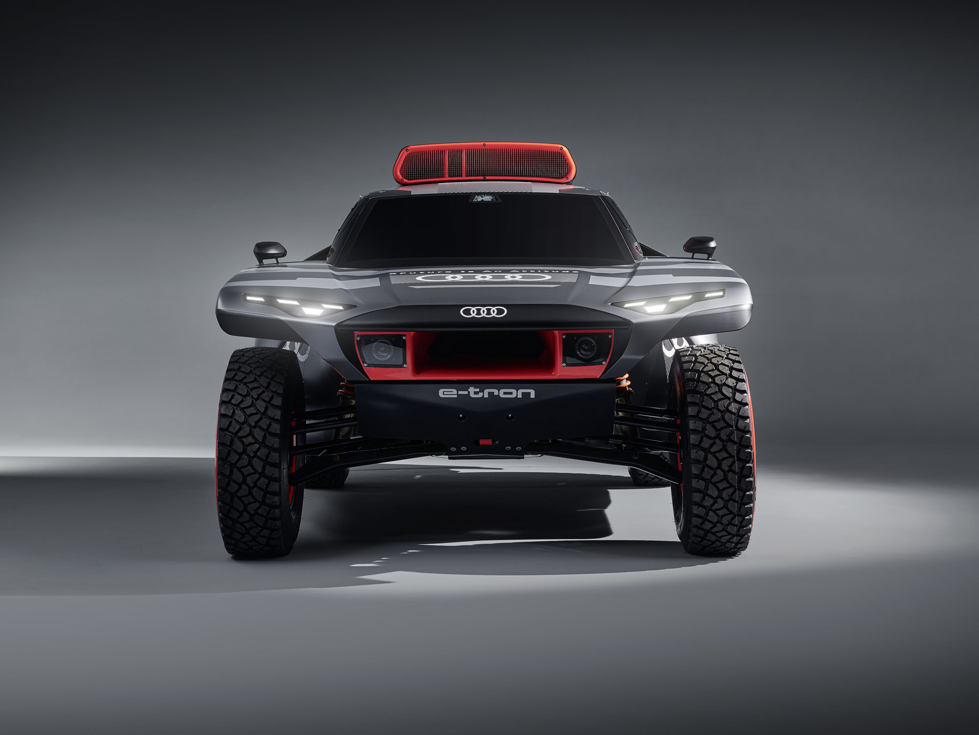 Управляющий директор Audi Sport GmbH и ответственный за автоспорт в Audi Юлиус Зеебах заявил: «Наш RS Q e-tron был создан с чистого листа в рекордно короткие сроки». И в эпоху постепенного отказа от ДВС именно электрической части модели было уделено основное внимание. Два электромотора совместно выдают тут 500 кВт (680 л.с.). Электроника играет роль виртуального межосевого дифференциала, постоянно перераспределяя тягу между колёсами ради наилучшей динамики в каждой конкретной ситуации.