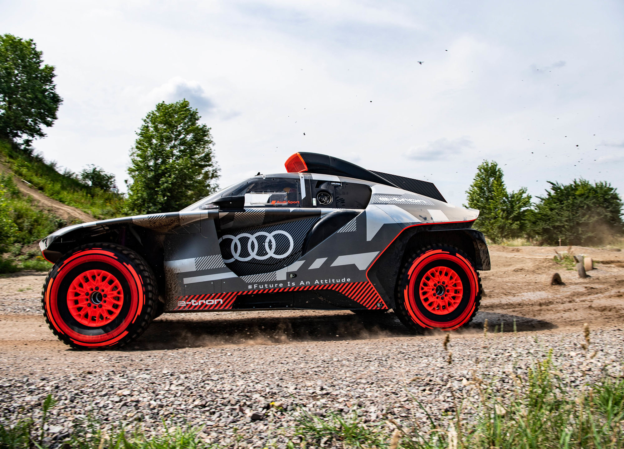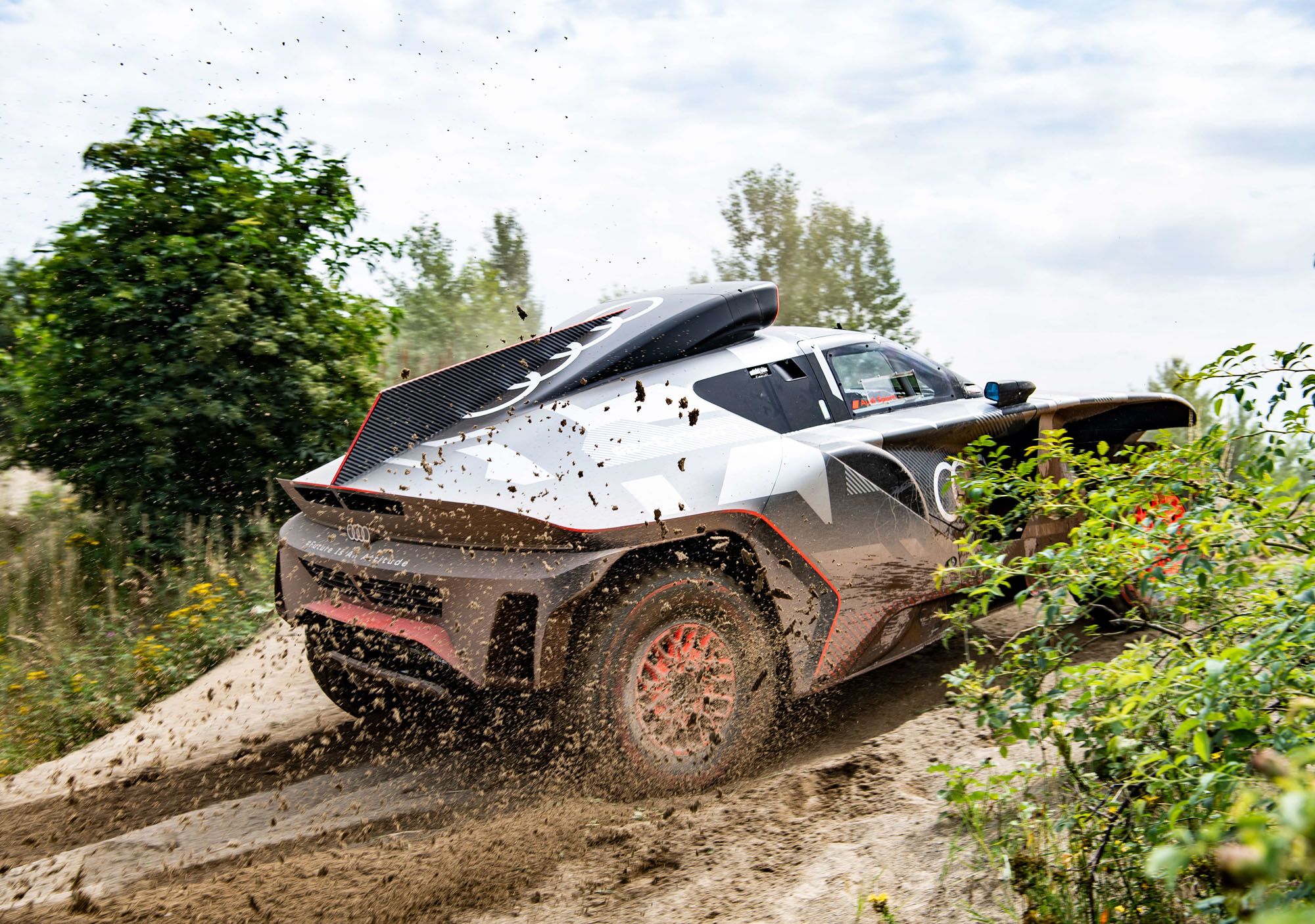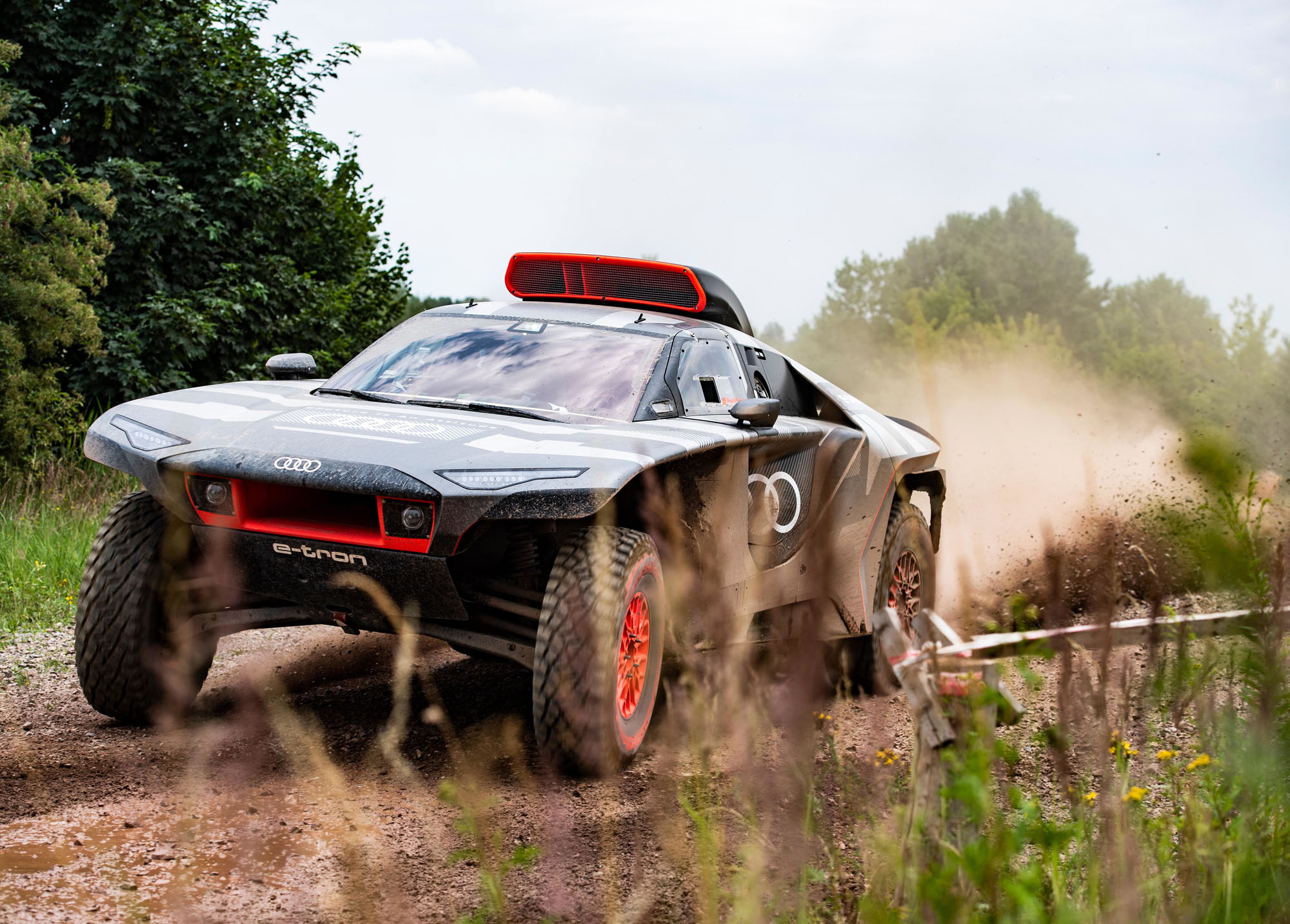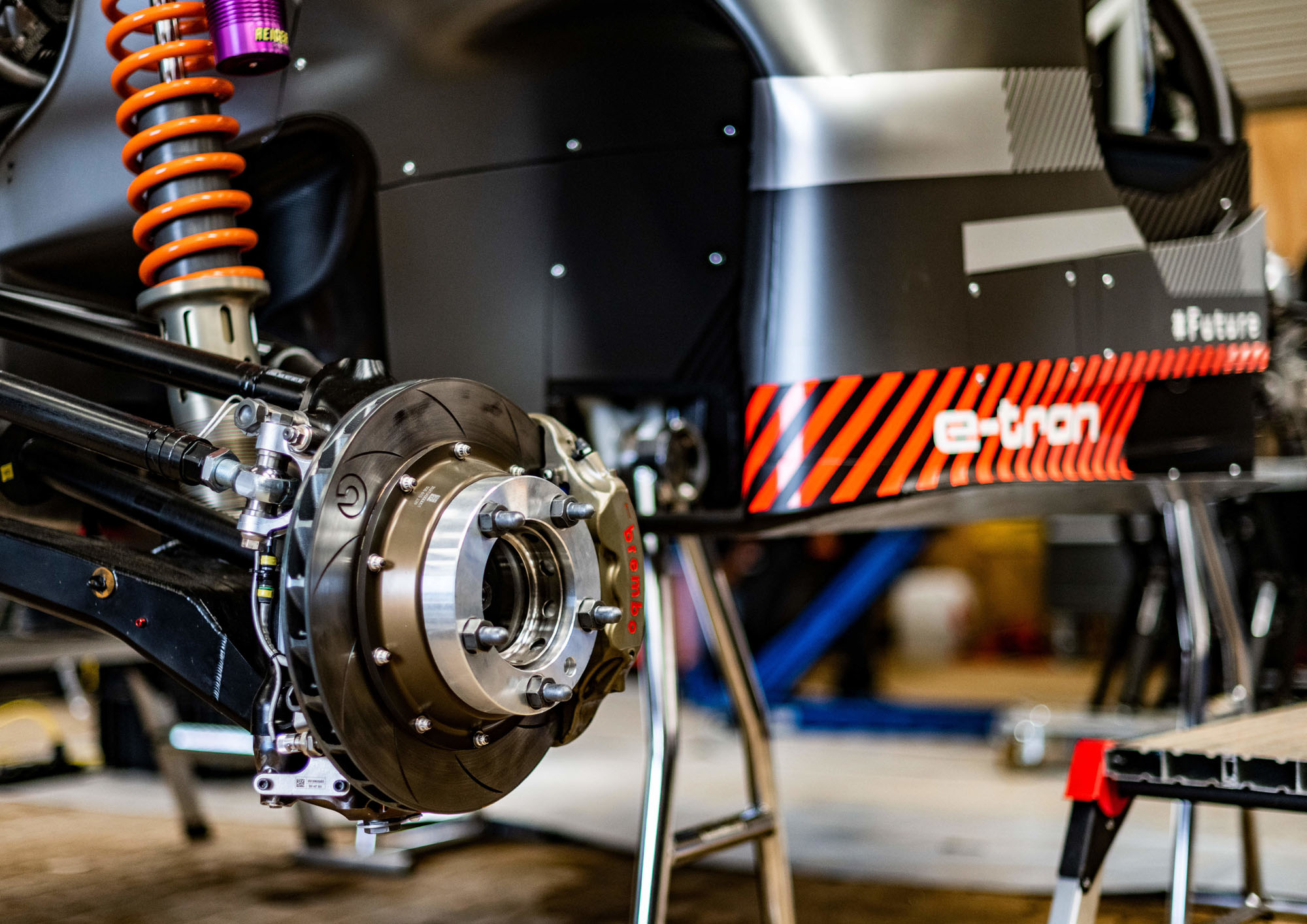 Управляющий директор Audi Sport GmbH и ответственный за автоспорт в Audi Юлиус Зеебах заявил: «Наш RS Q e-tron был создан с чистого листа в рекордно короткие сроки». И в эпоху постепенного отказа от ДВС именно электрической части модели было уделено основное внимание. Два электромотора совместно выдают тут 500 кВт (680 л.с.). Электроника играет роль виртуального межосевого дифференциала, постоянно перераспределяя тягу между колёсами ради наилучшей динамики в каждой конкретной ситуации.
