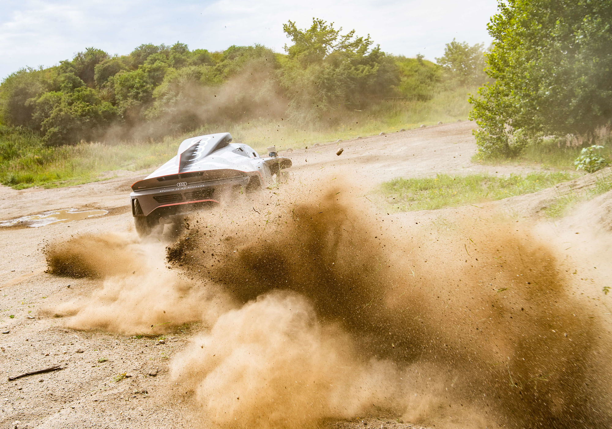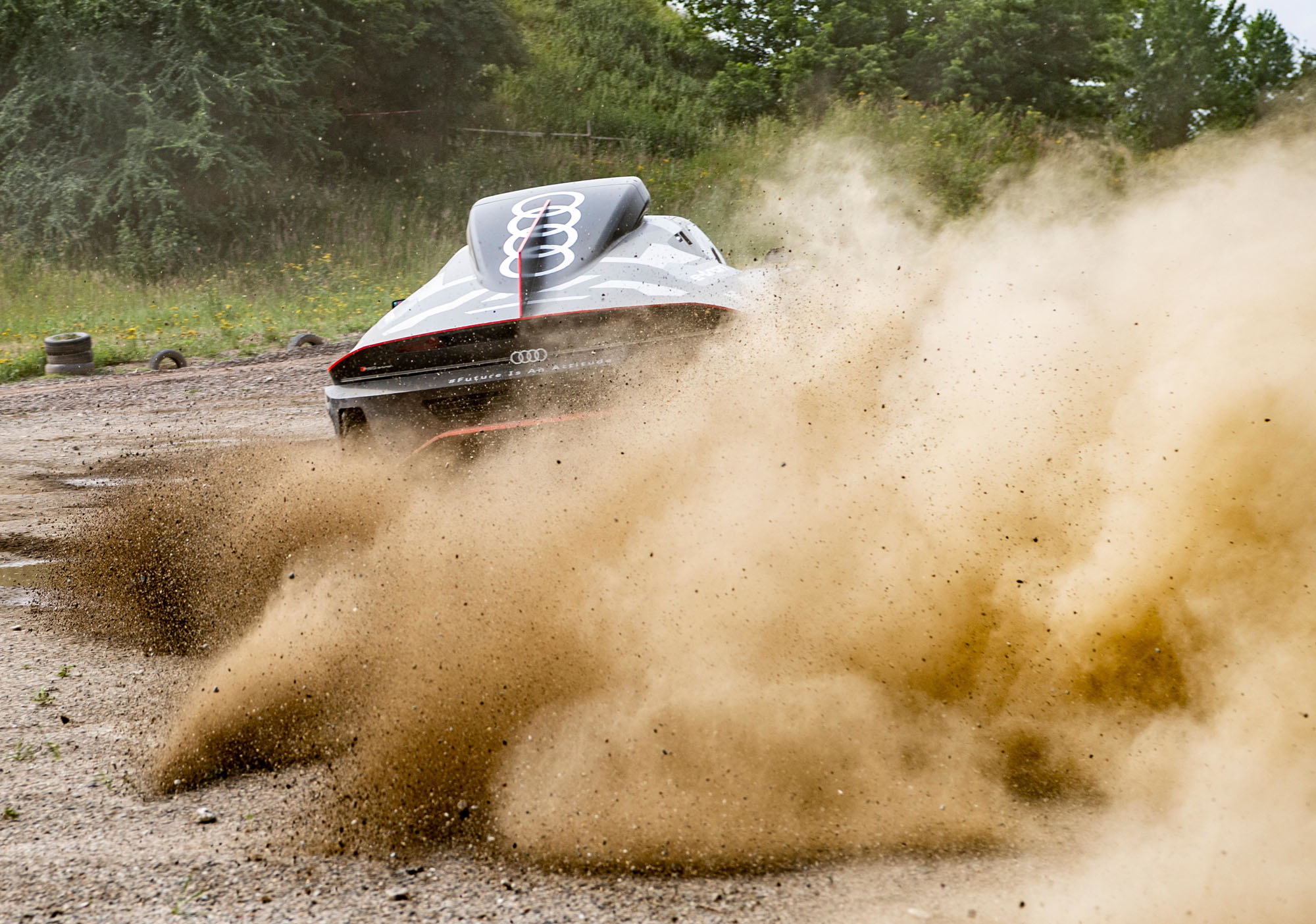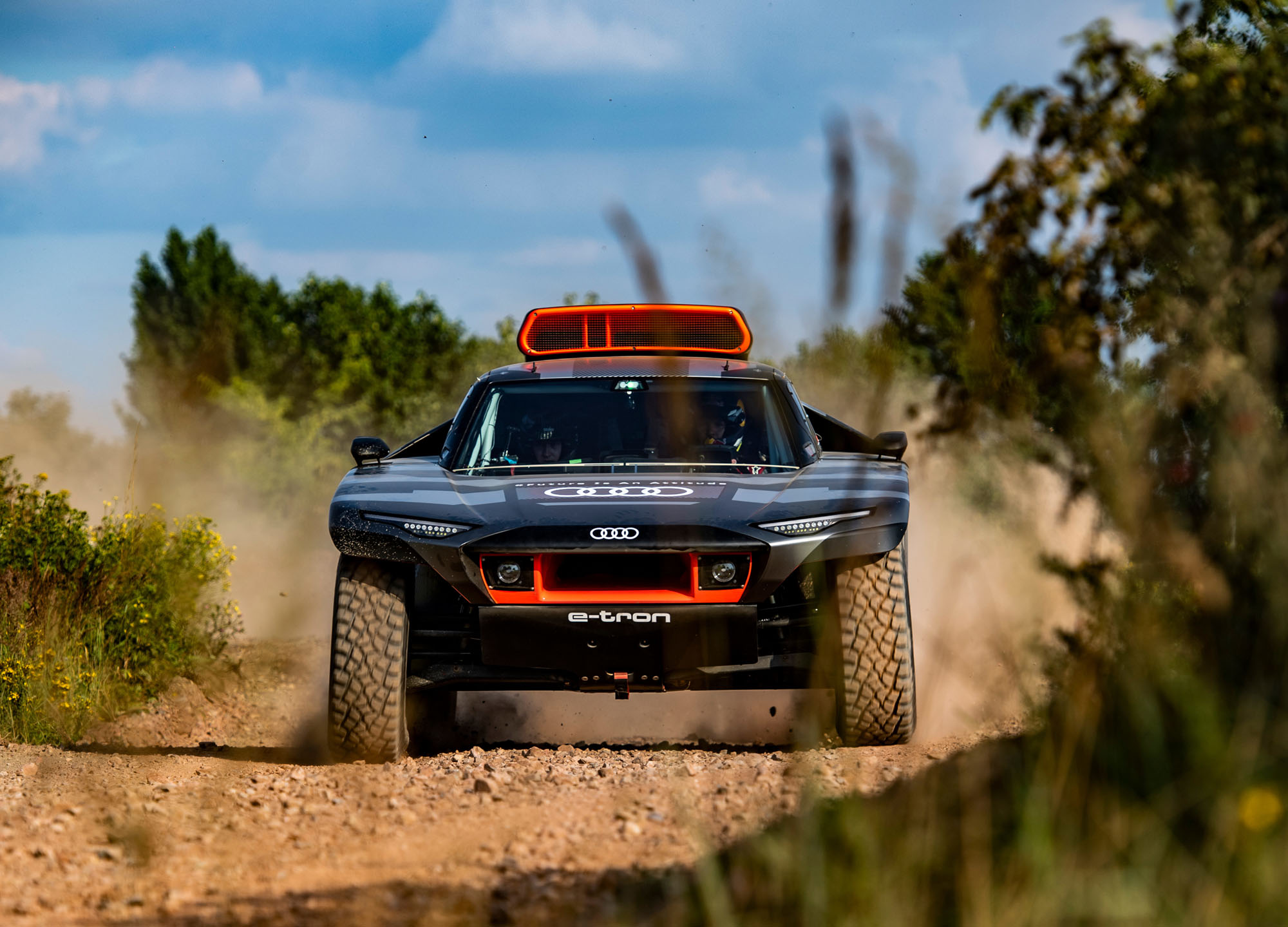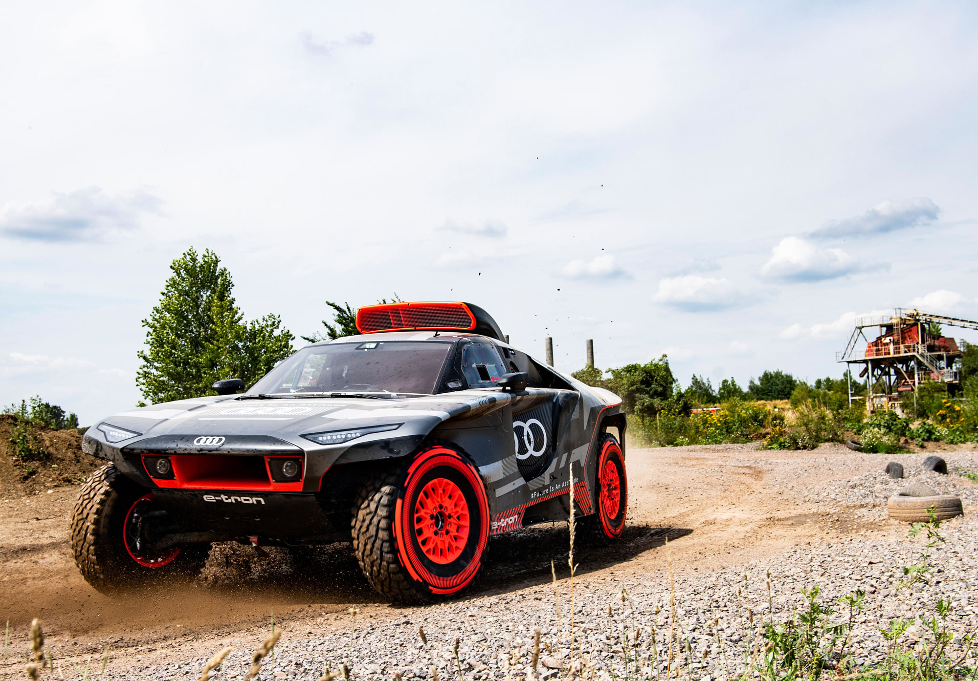 Управляющий директор Audi Sport GmbH и ответственный за автоспорт в Audi Юлиус Зеебах заявил: «Наш RS Q e-tron был создан с чистого листа в рекордно короткие сроки». И в эпоху постепенного отказа от ДВС именно электрической части модели было уделено основное внимание. Два электромотора совместно выдают тут 500 кВт (680 л.с.). Электроника играет роль виртуального межосевого дифференциала, постоянно перераспределяя тягу между колёсами ради наилучшей динамики в каждой конкретной ситуации.