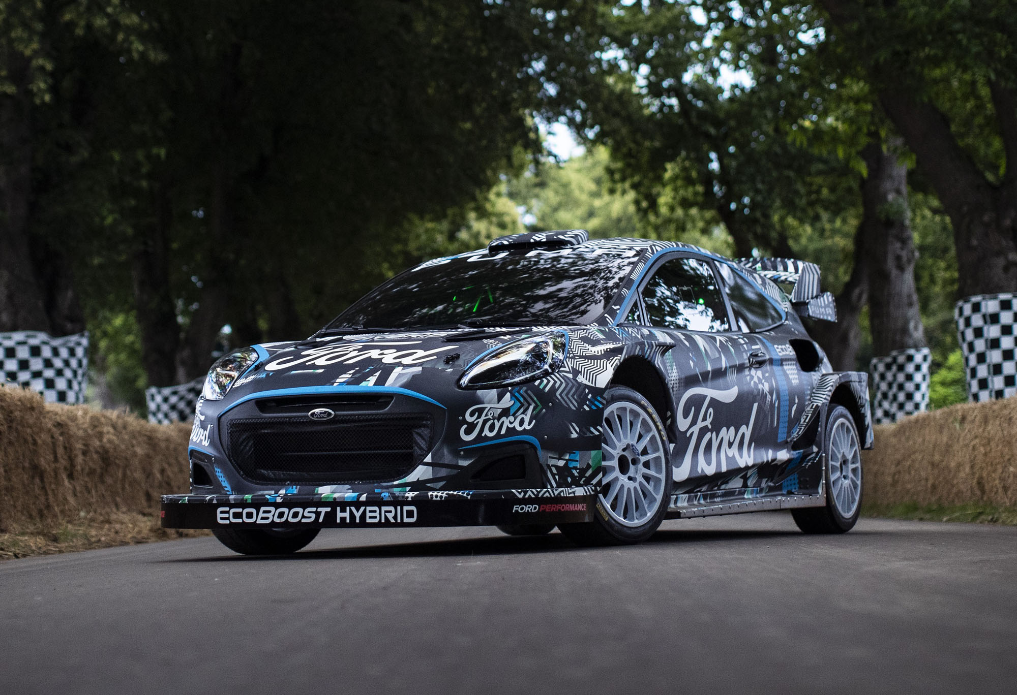Новую эру электрифицированных соревнований на чемпионате мира по ралли FIA (WRC) с 2022 года намерен открыть Ford, а в качестве превью представил в Гудвуде прототип M‑Sport Ford Puma Rally1, подготовленный в кооперации с командой M-Sport Ford World Rally Team. Внешне машина подражает серийной Пуме, хотя кузов серьезно изменён. Да и техника в раллийном автомобиле оригинальная. Тут стоит новое поколение гибридной силовой установки, сочетающей турбомотор 1.6 EcoBoost со 100-киловаттным (136 л.с.) электродвигателем, а также с батареей ёмкостью 3,9 кВт•ч.