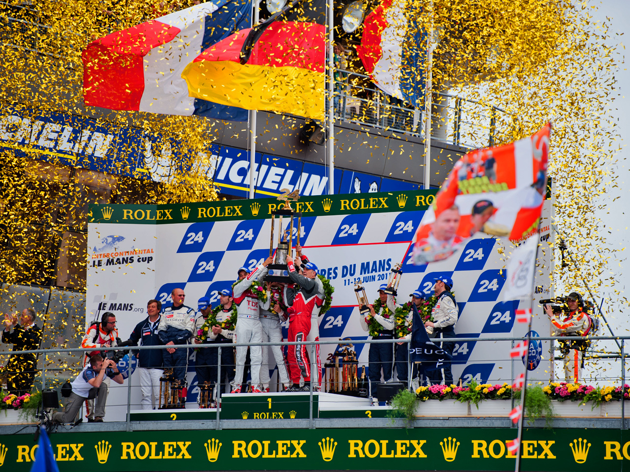 На одном из огромных экранов, что стоят вдоль трассы, снова слёзы. Вчера плакали от радости в боксах Audi, когда Макниш выжил. Теперь плачут с досады — французы в боксах Peugeot. Не догнали... На финал этой драмы я остаюсь с той стороны финишной прямой, которая ближе к трибунам. Сажусь на отбойник так же, как перед гонкой сидел Лоттерер, и наблюдаю за тем, как после снятия оцепления болельщики заполняют трассу. Кто-то становится на колени и целует асфальт. Жаль, я трезвый — тоже поцеловал бы. И гравий поцеловал бы, и отбойник, и симпатичную француженку-фотографа, что сидит рядом со мной на стене. С той стороны, под подиумом, давка. Помещения команды Peugeot по иронии судьбы ближе всех к мостику, на котором стоит пъедестал. Кажется, что вся их часть здания сочится горечью. Хотя на вторую и третью ступени поднимаются два французских экипажа. Француз есть и в чемпионском трио, но спиной чувствую: трибуны не видят в этом повода для национального праздника.