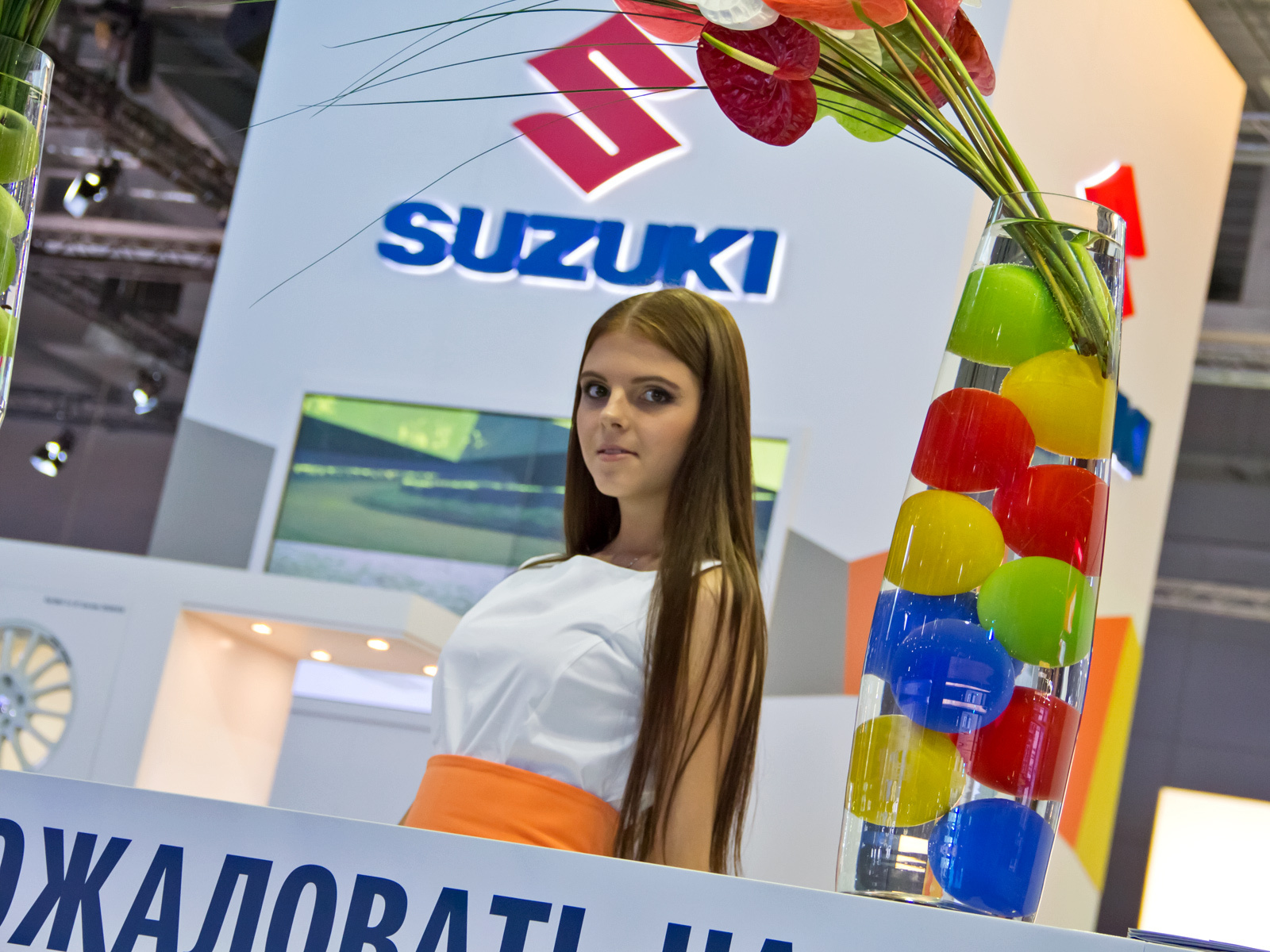 Несмотря на призыв «Добро пожаловать на стенд Suzuki», через контрольно-пропускной пункт так никто и не прошёл. Все толпились у входа.