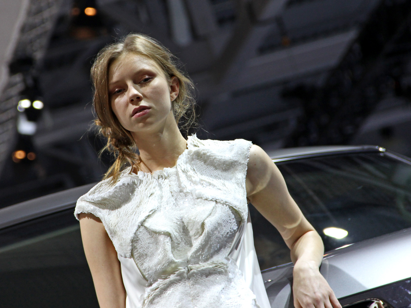 После получасовых извиваний стендистка с экспозиции Mitsubishi сумела-таки найти позу, чтобы показать все свои прелести.