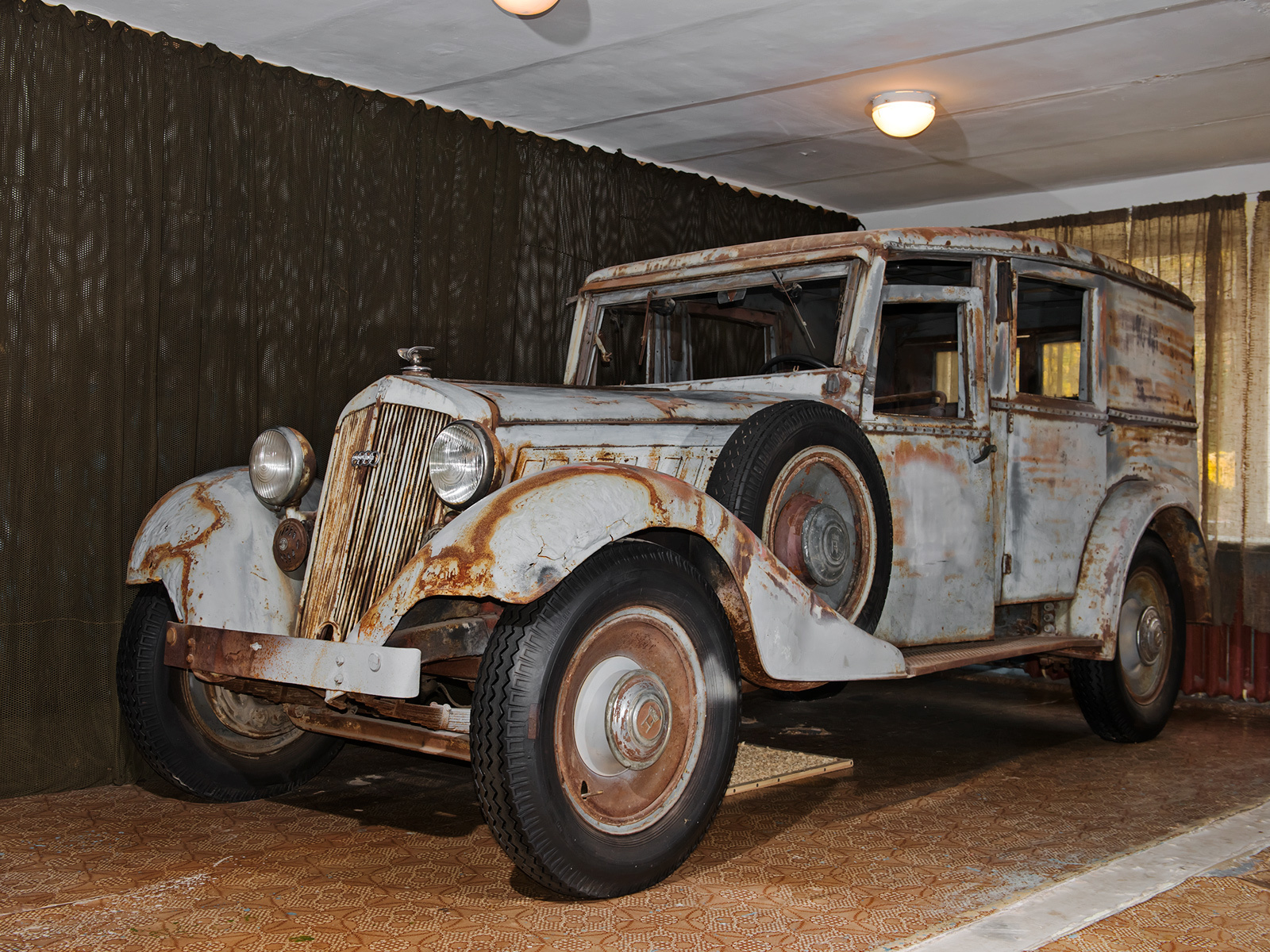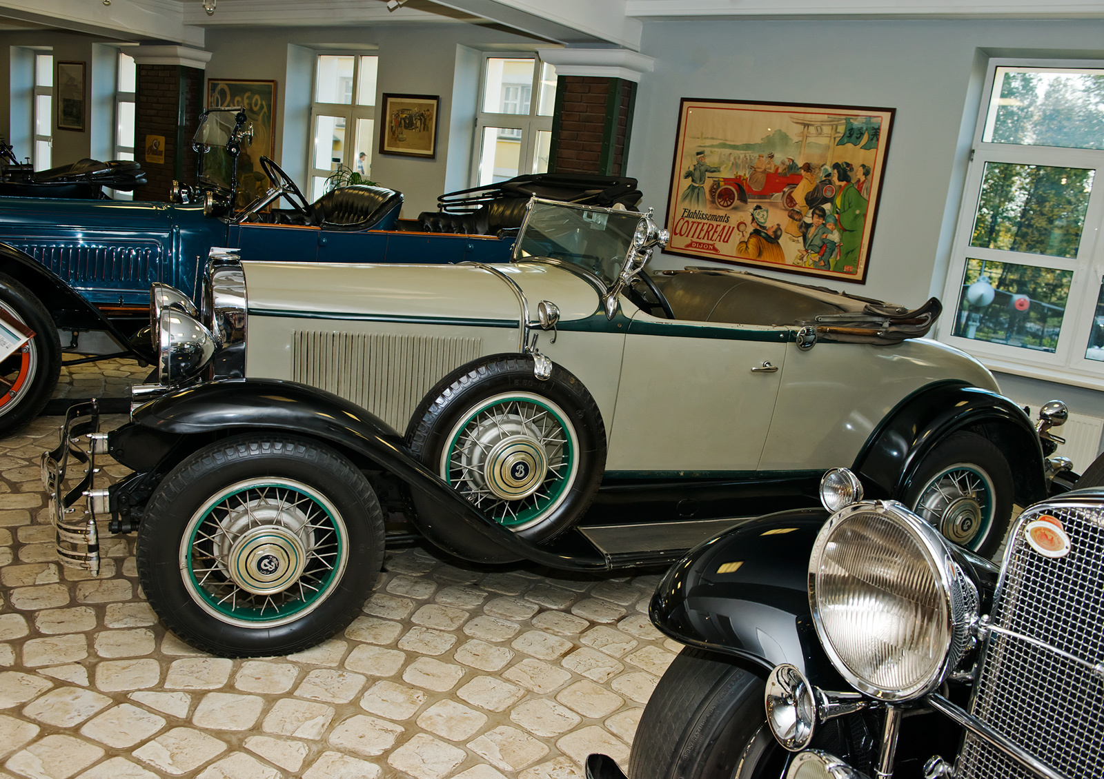 Костяк Музея ретро-автомобилей (МРА для кратости) — бывшая заводская экспозиция АЗЛК, с которой я хорошо познакомился ещё в детстве. Есть экспонаты из фондов Политехнического музея (помню тоже некоторые) и Гаража особого назначения. Плотным заполнением площадей и минималистичным оформлением МРА как раз и напоминает этакий идеалистический европейский запасник. Увы, далеко не так на самом деле выглядят запасники российских госмузеев...