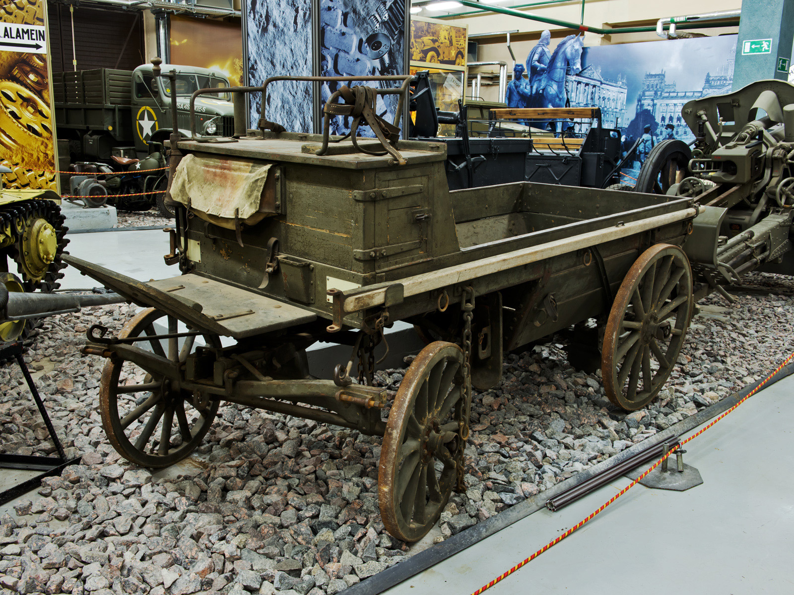 Зал делит надвое этакая «ось зла» — техника Германии и её сателлитов. Врага берут в клещи СССР, США и Великобритания, представленные по периметру. Крупногабаритные экспонаты превращают просторное помещение бывшего транспортного цеха в уютную комнату. Иногда даже в игровую: за небольшую доплату можно сфотографироваться в каком-нибудь Виллисе. Всё-таки военные машины не назовёшь недотрогами.