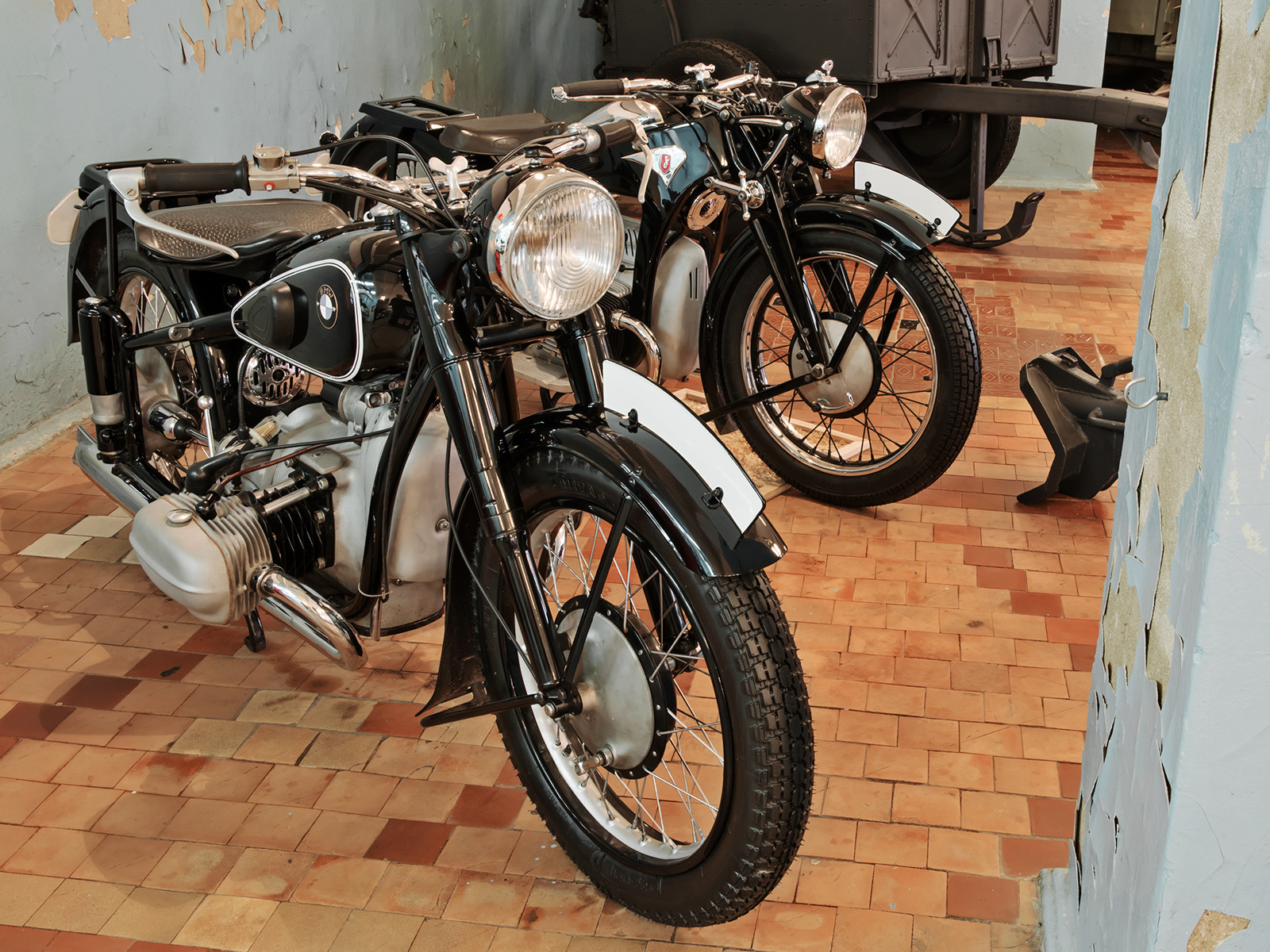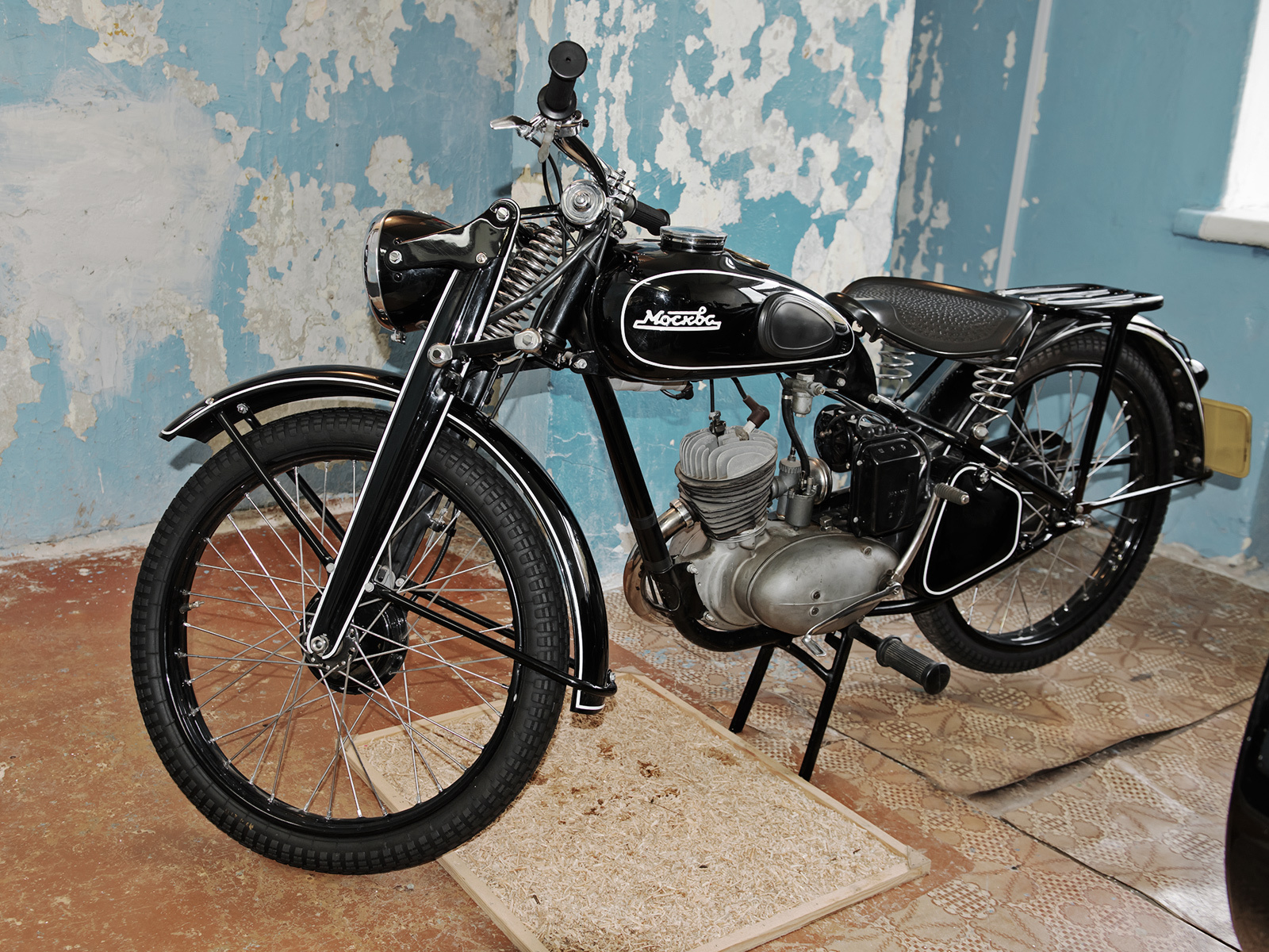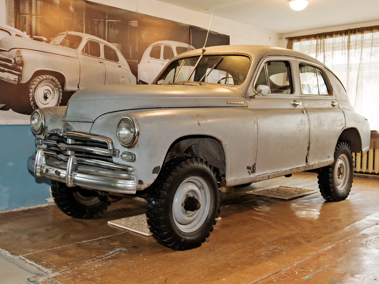 Одна из экспозиций развёрнута прямо в спальном корпусе! Там, где стояли в несколько рядов наши с вами кровати с аккуратно заправленными одеялами и подушками «домиком», выставлены попарно автомобили. Техника в палатах смотрится странно. Тем, кто понятия не имеет, что такое пионерлагерь, подобное размещение покажется нелепым. Но для нормального советского ребёнка — это кайф! Атмосфера лагеря неубиваема — машины и мотоциклы, выглядывающие в коридор, где мы строились на линейку, смотрятся круто.