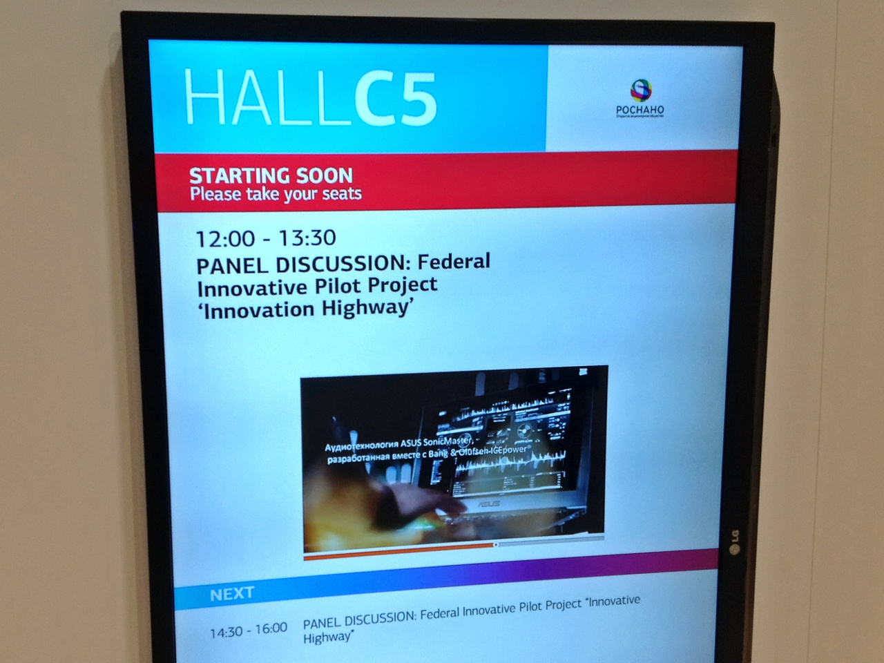 Как правило, это некий продукт, придуманный и изготовленный за рубежом много лет назад, по лицензии продающийся теперь у нас. Большинство российских инновационных компаний — дилеры такой продукции. Некоторые из них потихоньку перенимают опыт и делают что-то своё. Это нормально. Но неопределённость и путаница сопровождают инновации в России повсеместно: даже на англоязычном табло при входе в зал было написано ошибочное Innovation Highway вместо Innovative Road.