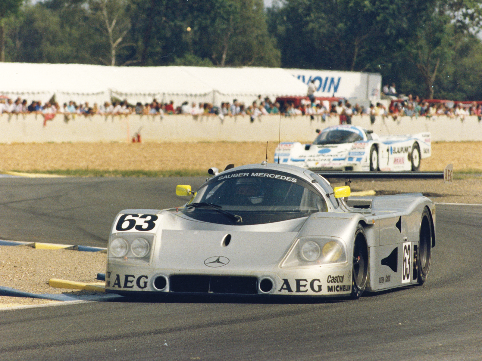 Болид Sauber Mercedes C9 — отличный повод поговорить о максимальных скоростях «24 часов Ле-Мана». Есть, скажем, такие данные. Выходит, что впервые ровно до 400 км/ч разогнался как раз Sauber Mercedes C9 в 1989 году, победив в той лемановской гонке. Тут, правда, нужно признать, что рекордной эта скорость уже не была: годом ранее принадлежащий Peugeot прототип WM P88 добрался до 405 км/ч (достижение актуально до сих пор). Но именно после результата болида Sauber C9 с трассы Ле-Мана убрали шикарный прямик, установив две шиканы. От греха подальше. Таким образом гонка за максималкой завершилась, и в 1990-м самым быстрым стал Nissan R90C, развивший 366 км/ч.