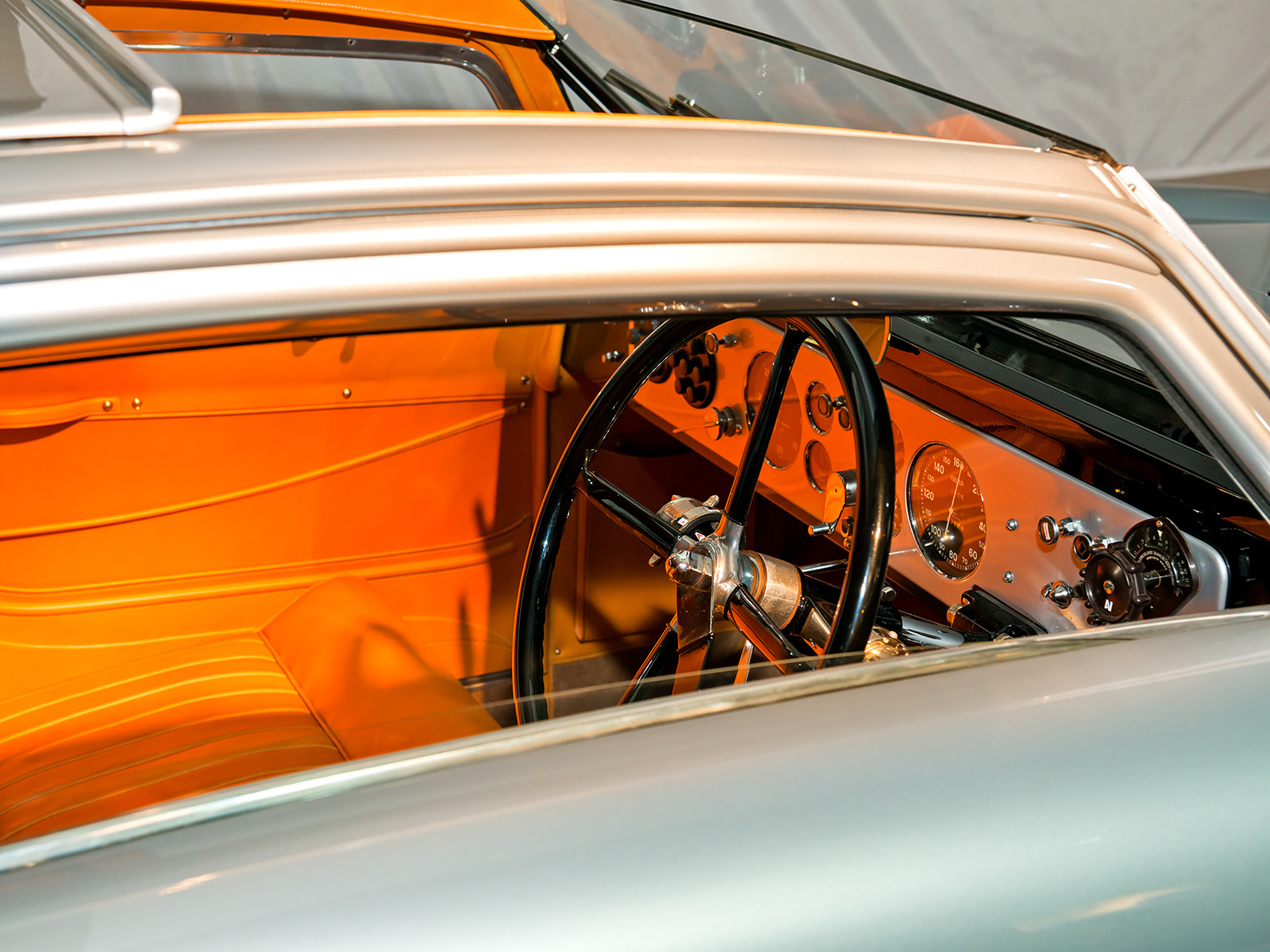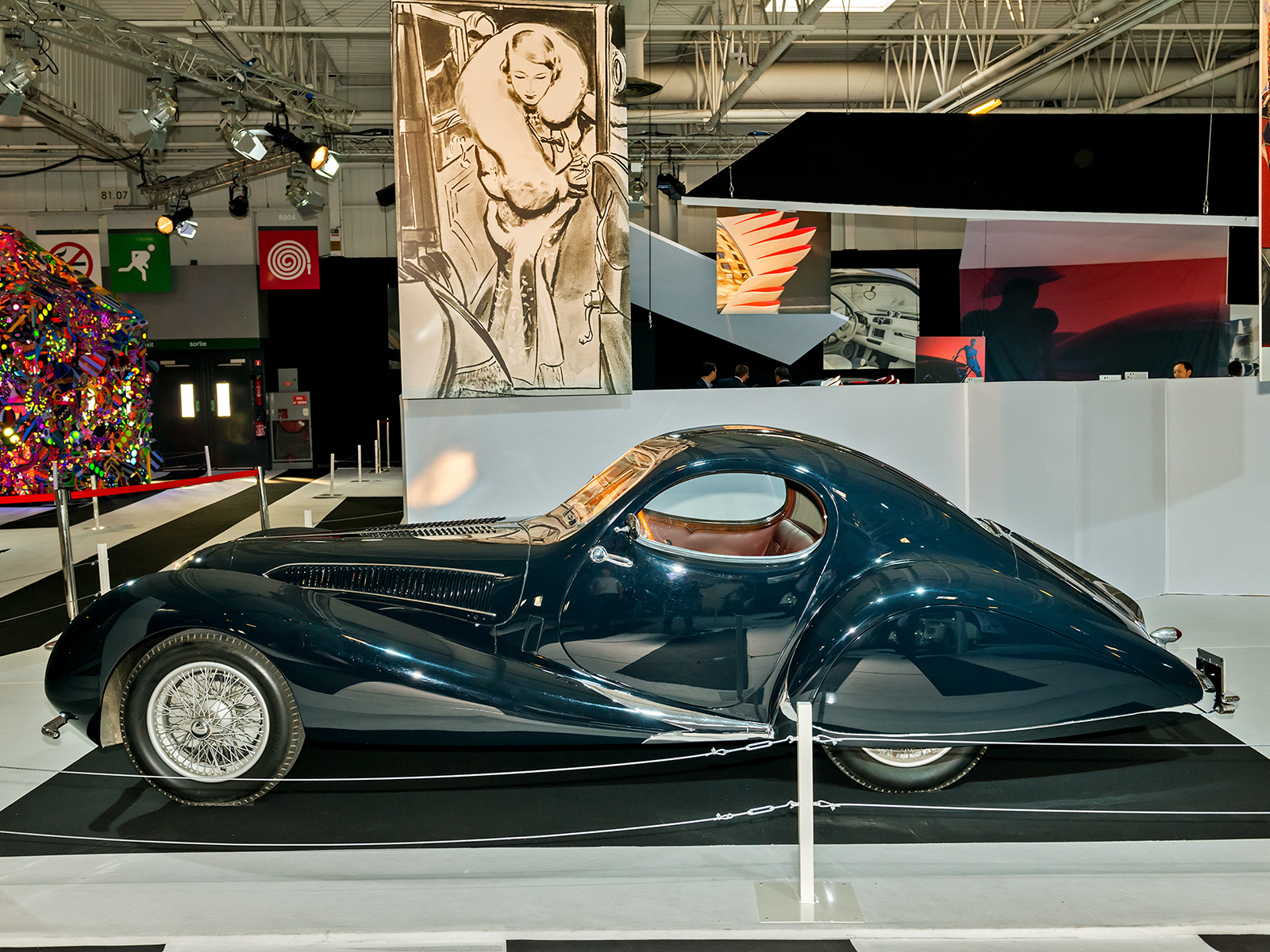 Купе Talbot Lago T150C SS (1939) — один из нескольких примеров необычной французской модели SS марки Talbot. Необычна она тем, что принципиально не имела своего штатного кузова. Клиентам предлагалось выбирать из ряда «оболочек» от разных кузовных ателье, в данном случае — от французской компании Figoni & Falaschi, которая постаралась максимально скруглить формы купе. Есть несколько моделей тридцатых годов с похожей внешностью. Данный образец — один из самых гармоничных.