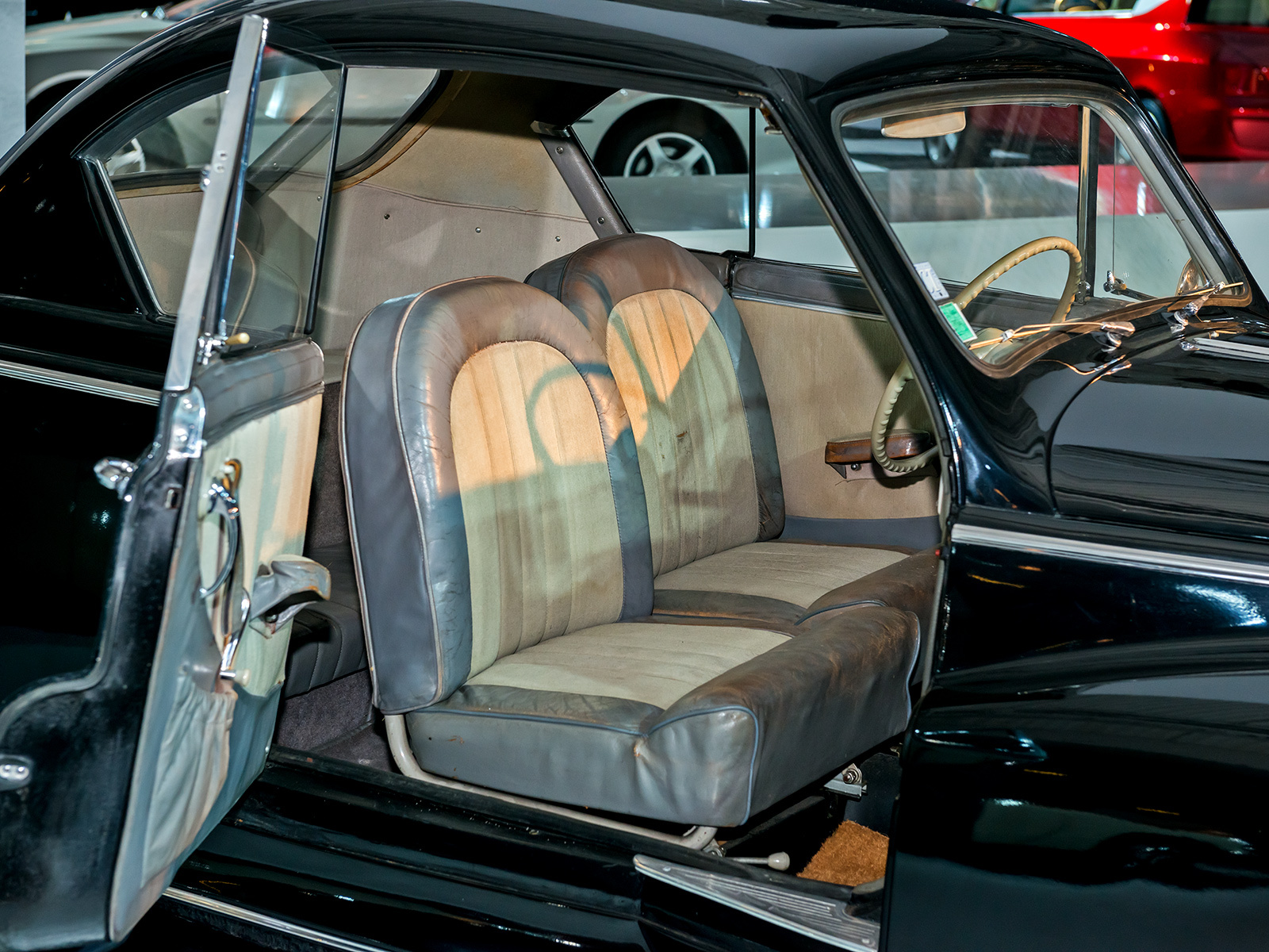 Открытый Panhard & Levassor M2F 6CV (1897) представляет один из 20 кузовов, имевшихся на тот момент в каталоге фирмы, которая, кстати, была первым серийным автопроизводителем в мире (с 1891-го). Двигатель — двухцилиндровый Phénix 1.6, позволявший развивать 25 км/ч.