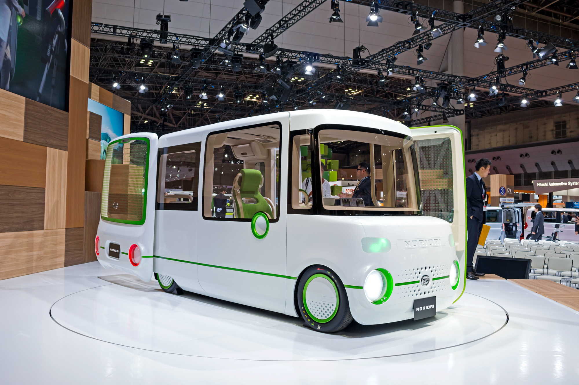 А сколько здесь решений и концептов для людей с ограниченными возможностями? Вот концепт Daihatsu Nori Ori: на инвалидной коляске можно проехать его насквозь. Уже серийная модель Tanto представлена в версии с выдвигающимся из багажника колясочным трапом. Или автомобиль-кубик с пассажирским креслом, выезжающим на роботизированной «лапе» почти на тротуар. Ещё удивили сами инвалидные коляски с электроприводом, рассчитанные на преодоление всевозможных бытовых преград: ступенек, спусков-подъёмов и даже щебёнки разного калибра. Забота!