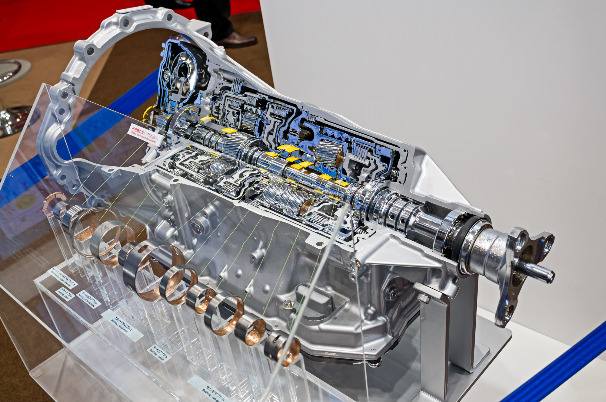 Второй характерный момент Tokyo Motor Show — наглядность. Здесь много стендов поставщиков агрегатов, и если, например, коробкой передач в разрезе и в Европе никого не удивишь, то здесь подача продукта на блюдечке возведена в высшую степень. Не просто разрез, а вдобавок к действующей модели, поясняющему видеоролику и деталям россыпью. Скажем, производит фирма подшипники для «автоматов»: вот на её стенде сама коробка, вот подшипники, а между ними — нити, протянутые к местам, где эти подшипники должны располагаться.