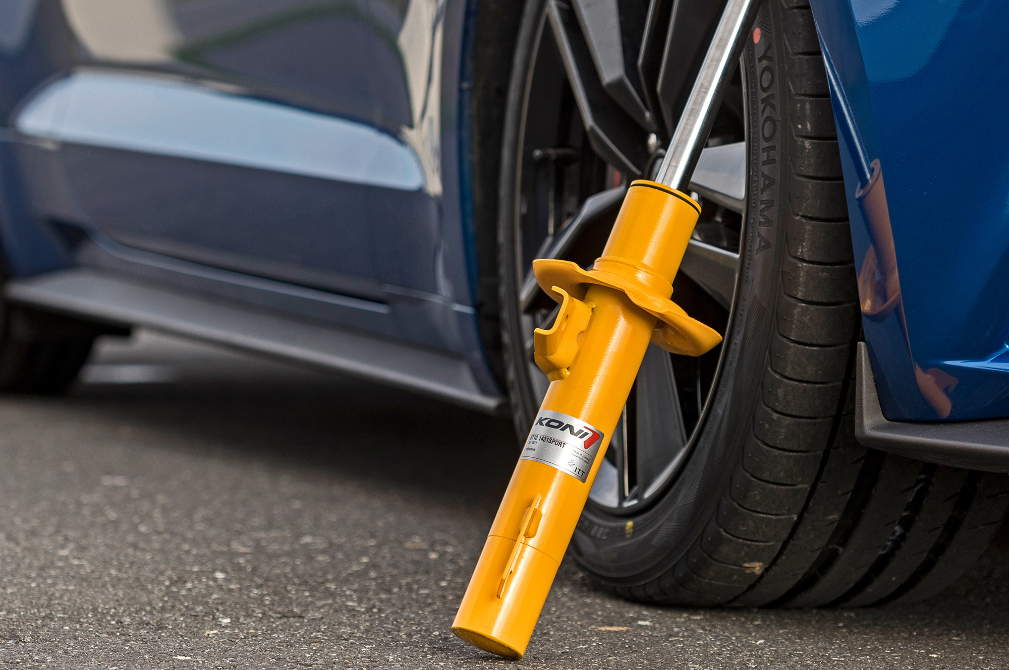 Как и 20 лет назад, их можно различать по цвету: американские дилеры отвергли идею покрывать все Koni красным ― дескать, клиент будет их путать. Жёлтый набор Sport Kit с регулировкой усилия отбоя и пружинами H&R превращает спорное купе Ford Mustang (см. ниже мнение главреда) в приятный автомобиль. Штатные настройки плохи как на гоночном треке, так и на обычных дорогах: раскачка, виляние на торможении и общее ощущение расхлябанности. «На Спортах», как говорят в российских гаражах с конца 90-х, когда Koni проторили дорогу на наш рынок, Mustang не теряет плавности хода, зато становится цельным в откликах и лучше держится за асфальт чумовой немецкой трассы Bilster Berg.