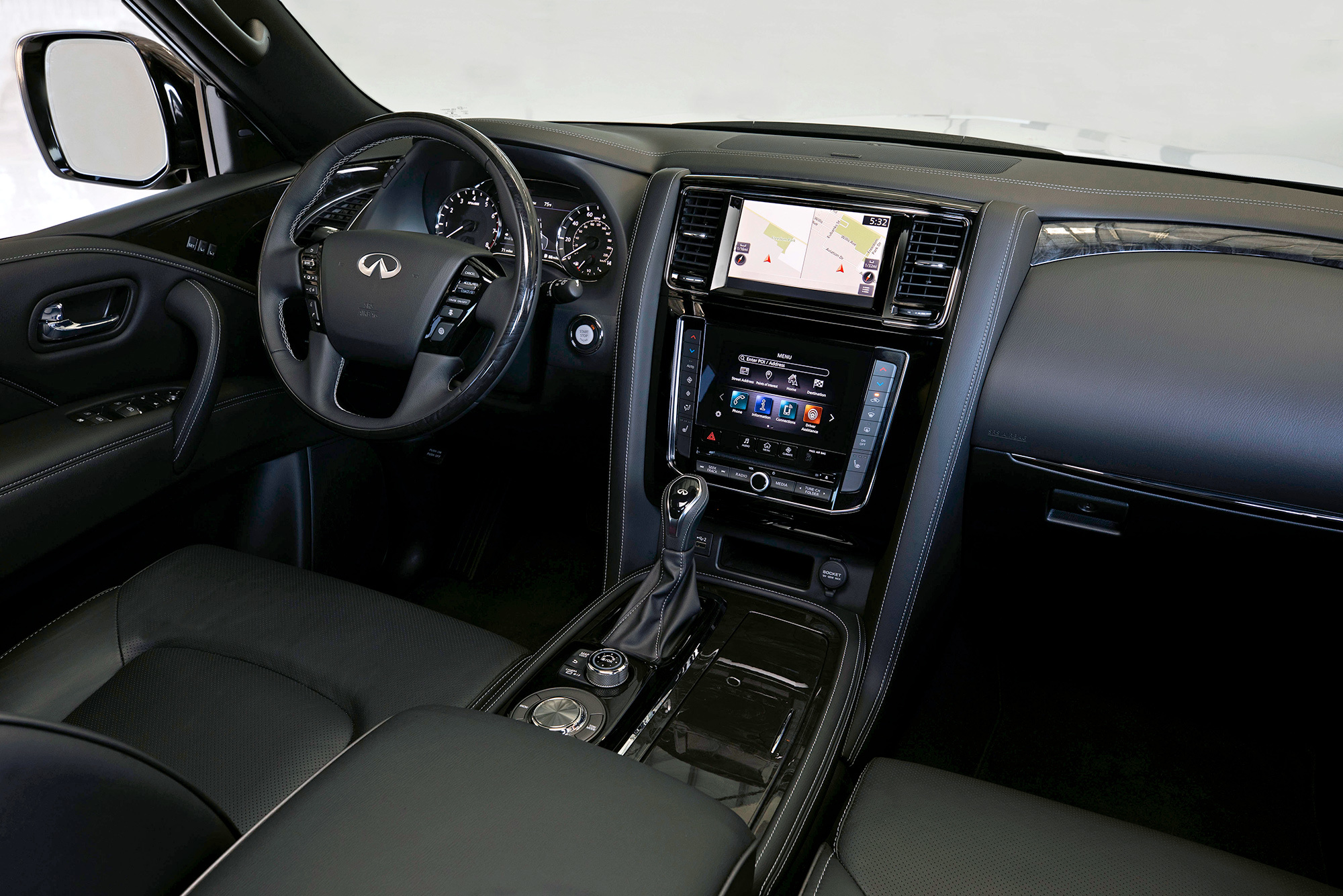 В чуть более далёкой перспективе, примерно годом позже, появится среднеразмерный кроссовер QX60. Дизайн перестанет быть подчёркнуто округлым, все линии заострятся, но пропорции останутся узнаваемыми. Чтобы понять, в каком стиле будет решён интерьер, стоит присмотреться к концепт-кару Q Inspiration: визуальным центром салона послужит крупный центральный дисплей. Мне показалось, что новый QX60 будет в целом построже, и это должно привлечь новую аудиторию.