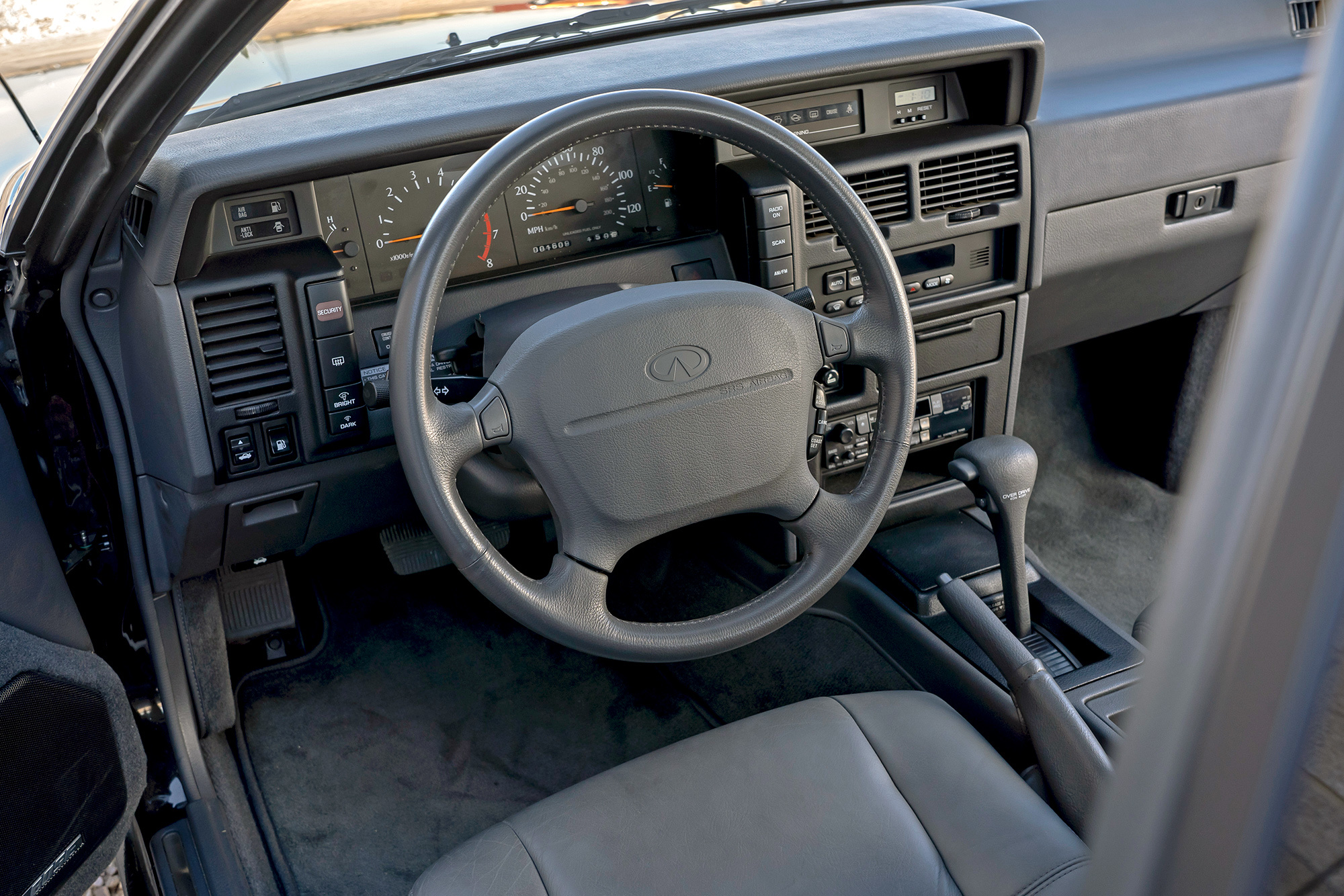 Ни на одном из выставочных образцов поездить не дают, даже Q45 закрыт наглухо. Так и останется для меня загадкой, за что эта малоизвестная модель ценится на вторичном рынке. За те самые «мыльницы» первых лет выпуска с глухим передком (решётку радиатора вернули на место при первом рестайлинге) просят по полмиллиона рублей! Неужели до сих пор исправно работает первая в мире серийная активная пружинно-гидравлическая подвеска, применённая за десять лет до мерседесовской системы Active Body Control? Ведь даже интерьер не манит: выгнутая в саабовском духе передняя панель заполнена банальными квадратными кнопками.