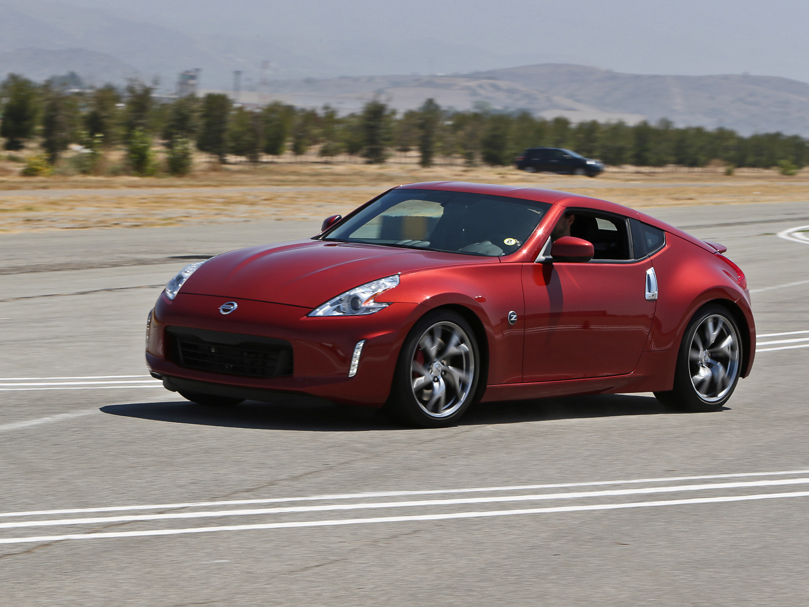 Давно мечтал прокатиться на 370z и даже подумывал о покупке его предшественника — Nissan 350z. В России эта модель не представлена и, как мне кажется, зря: своего покупателя она бы нашла. Да, машина тесновата, тяжеловата и мягковата для истинного трек-кара, но для ежедневного перемещения настройка подвески подходит отлично, а трёхсот тридцати двух «лошадей» атмосферной «шестёрки» объёмом 3,7 л хватает за глаза. Щелчок кнопки отключения стабилизиции, предусмотрительно заклеенной чёрным скотчем (но мы-то знаем, где она!), и с короткой пробуксовкой купе срывается со стартовой черты. В ритмичных змейках вести 370z приятно, под сброс газа он немного закидывает корму, а чуткие педали позволяют играть динамическим распределением веса. В широком повороте в середине круга даже удаётся немного поскользить. Оценил автоматическую подгазовку при переключении вниз — отличная штука! Но заметные крены и недостаточно цепкие тормоза портят впечатление. Всё же базовая «зетка» — не совсем спорткар, а скорее Гран Туризмо.