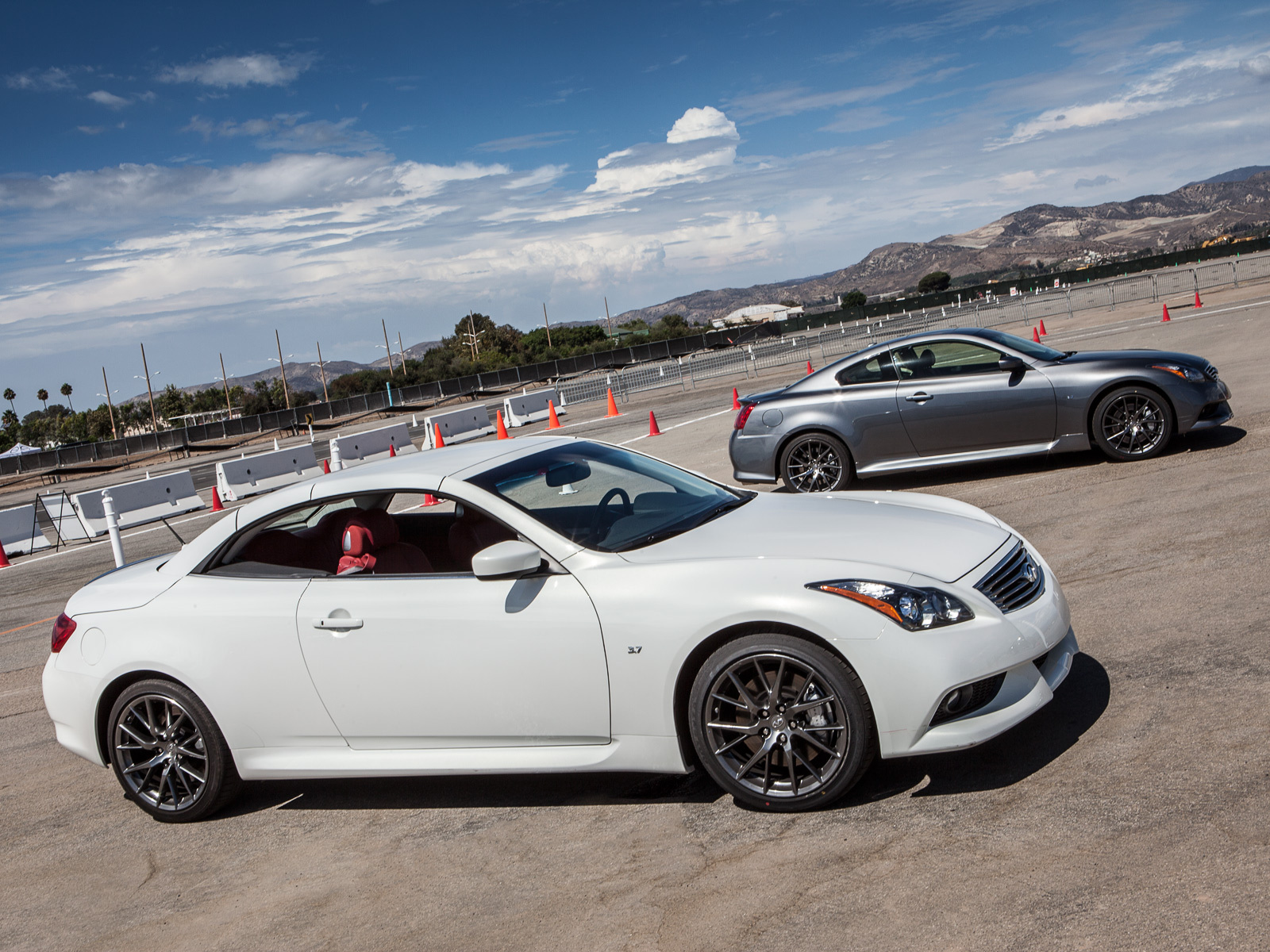 В отличие от предыдущих автомобилей кабриолет Infiniti G37 IPL представлен с семиступенчатой автоматической трансмиссией. Машина чуть тяжелее аналогичного купе, и на треке это заметно по увеличившимся кренам кузова. При этом и мощность чуть выше — 348 л.с. Радуют адекватная работа «автомата» и честный ручной режим. Кабриолет позволяет и зажечь, и, что немаловажно, в полной мере насладиться прекрасным звуком настроенного выхлопа.