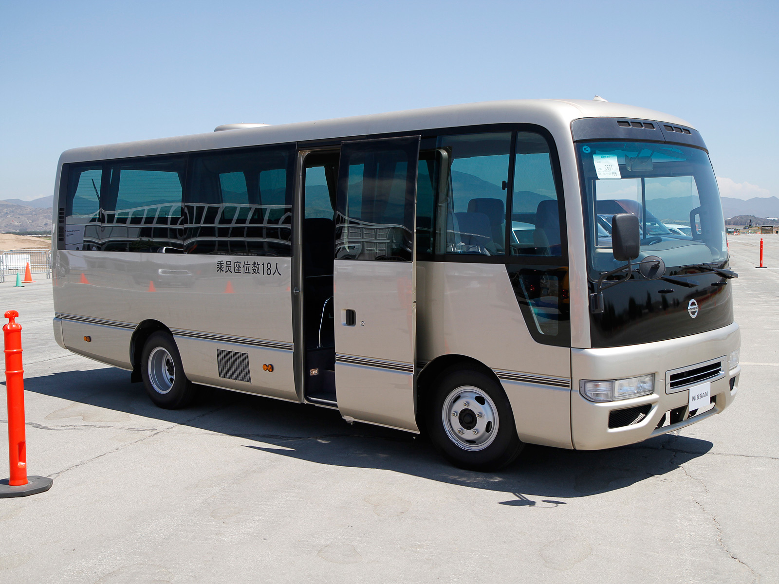 Автобус Nissan Civilian — конечно, не полноценный Икарус с гармошкой, но уже далеко не маршрутка. А значит: «Уважаемые пассажиры, двери закрываются, следующая остановка — Лос-Анджелес». Управлять автобусом с восемью рядами пассажирских сидений оказалось не так сложно, как думалось. Как и в случае с грузовиком, обилие зеркал позволяет видеть всё, включая передний бампер — так даже у легковушек не бывает. Но, разумеется надо делать поправку на длину, составляющую без малого семь метров. Двигатель тут заметно тяговитее, чем в Кэбстаре, — рядная «шестёрка» мощностью 180 л.с., выдащая 323 Н•м, вполне убедительно разгоняет шеститонную махину. Конечно, это, как и грузовик, скорее развлечение, чем серьёзный тест, но ведь интересно! «Передавайте за проезд!»