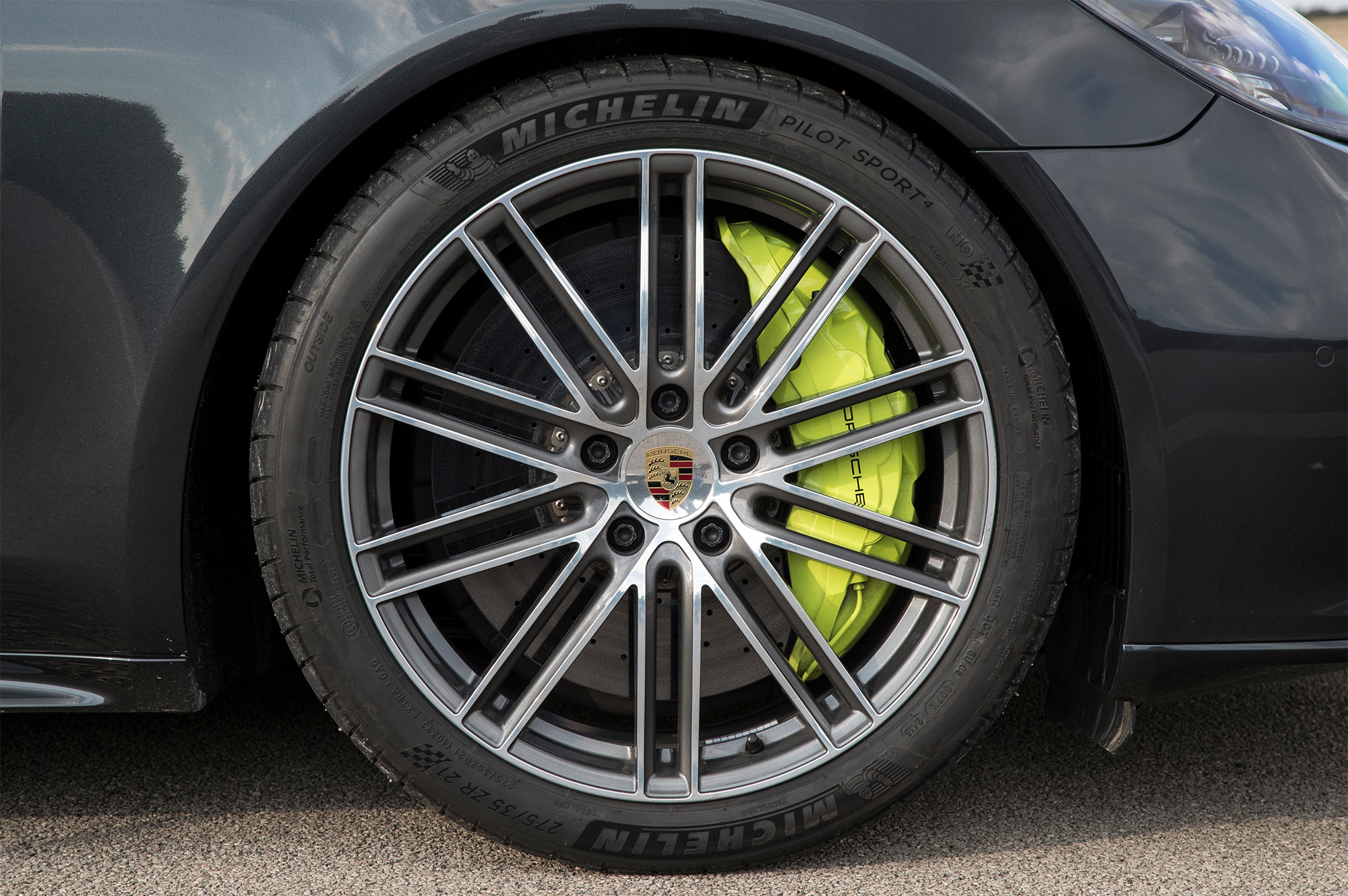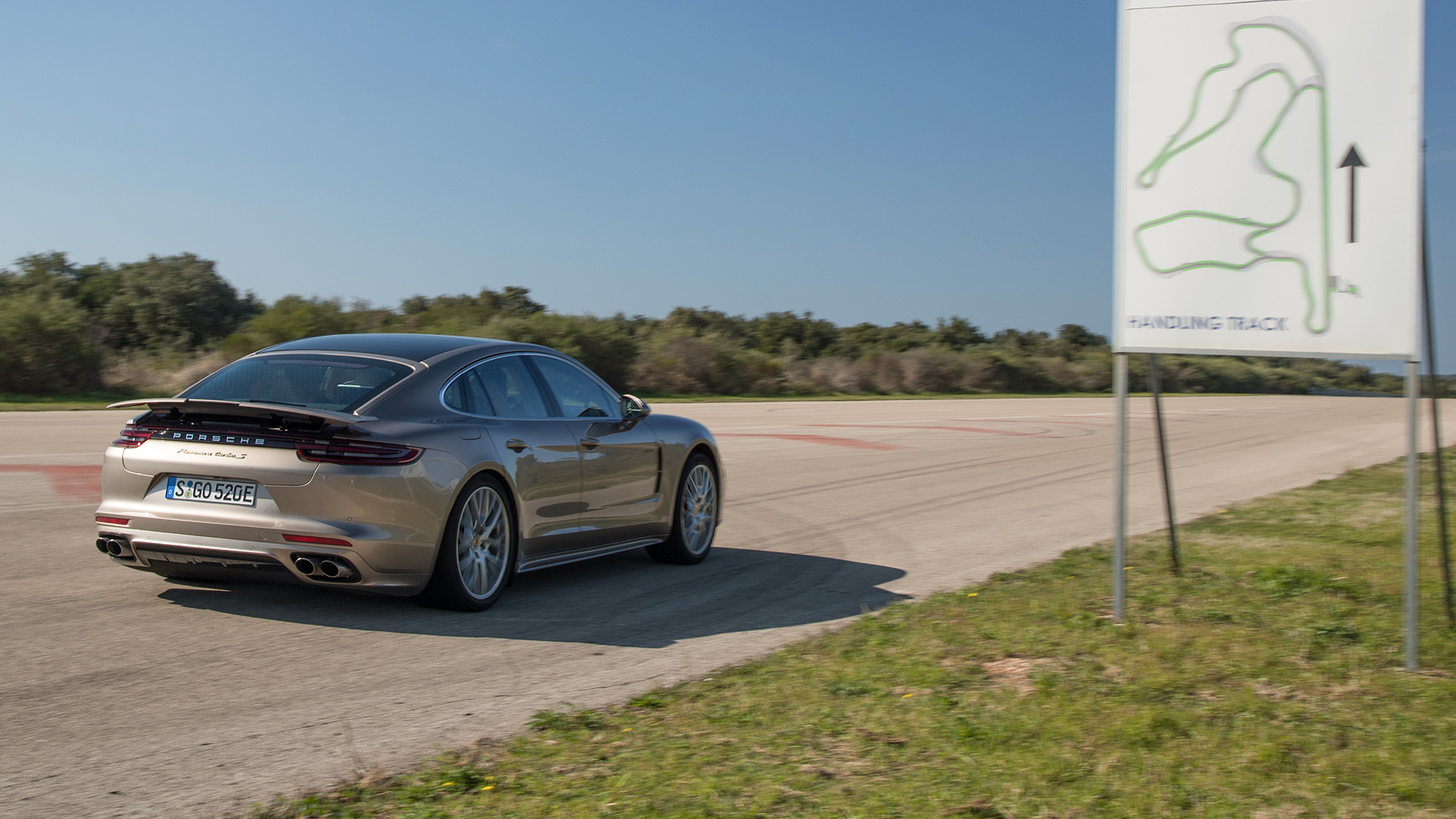 Вся презентация идёт с акцентом на скорость. Мол, гибридность версии Turbo S — это прежде всего способ сделать её быстрее (слово в слово как на тест-драйве Porsche 918). Нас даже вывозят на знаменитое 12-километровое кольцо и с лёгкостью разгоняют до лимитированной максималки: 316 км/ч по спидометру или 310 истинных. Испытатель Ларс Керн, тот самый что установил на Панамере рекорд круга на Нюрбургринге, полагает, что можно и 325. Увы, даже по спецзаказу партнёры Michelin и Pirelli не могут изготовить шины, способные выдержать такой ход, уложившись при этом в требования Porsche к массе колеса, критичной для комфорта.