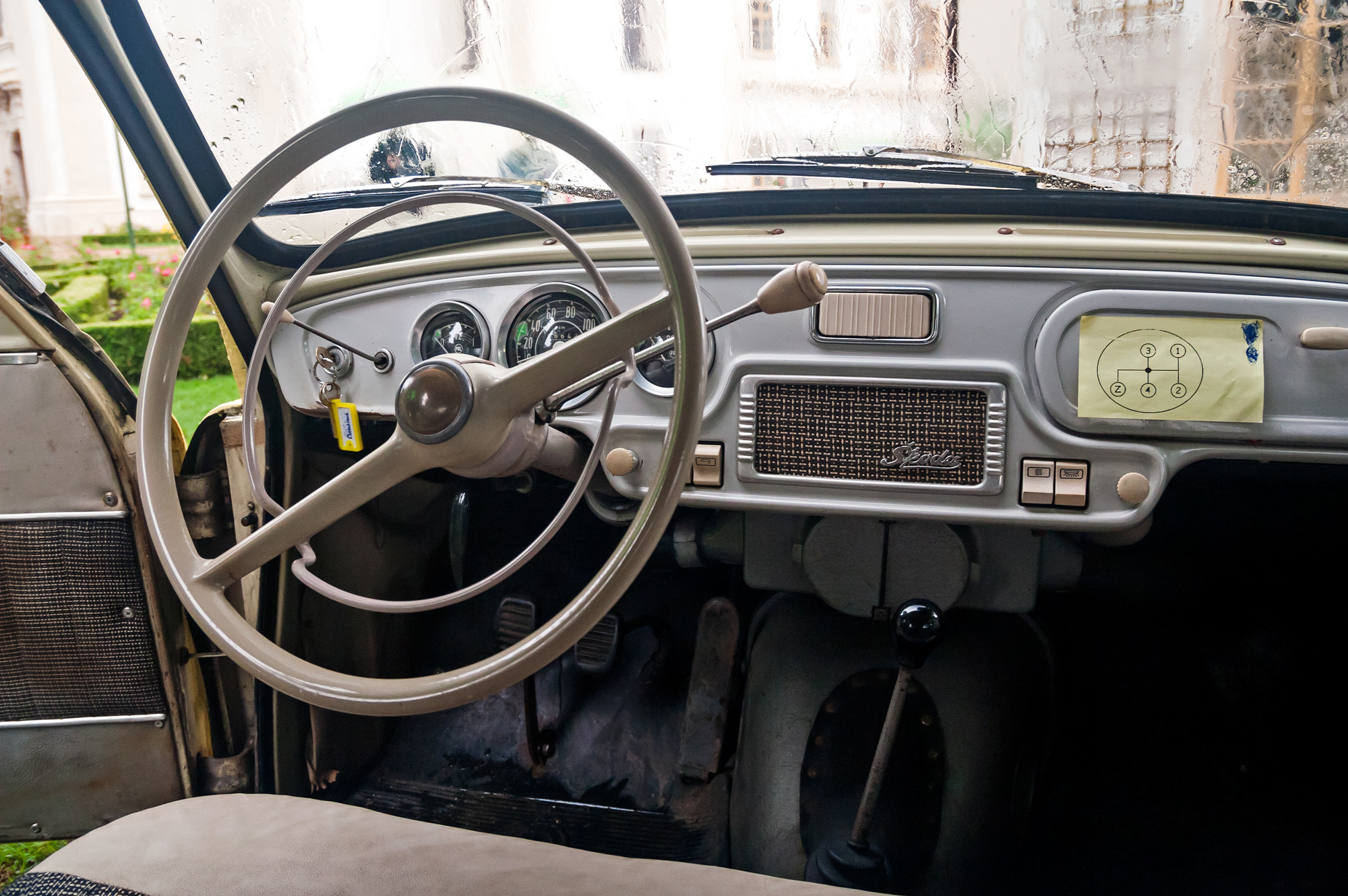 Если внешне древняя Octavia напоминает советский холодильник, то внутри — радиолу. Чувствуешь себя гарантийным человечком из повести Эдуарда Успенского. Передняя панель — жесть. Тут вообще много жести во всех смыслах. Но первейшее впечатление верно — с Октавией намного проще ужиться, чем с её предшественницей, которой является как раз напугавшая меня Skoda 440 Spartak. Олдовая Octavia пережила трансплантацию коробки: вместо неудобного подрулевого переключателя передач хозяин поставил обычный рычаг (это распространённое явление).