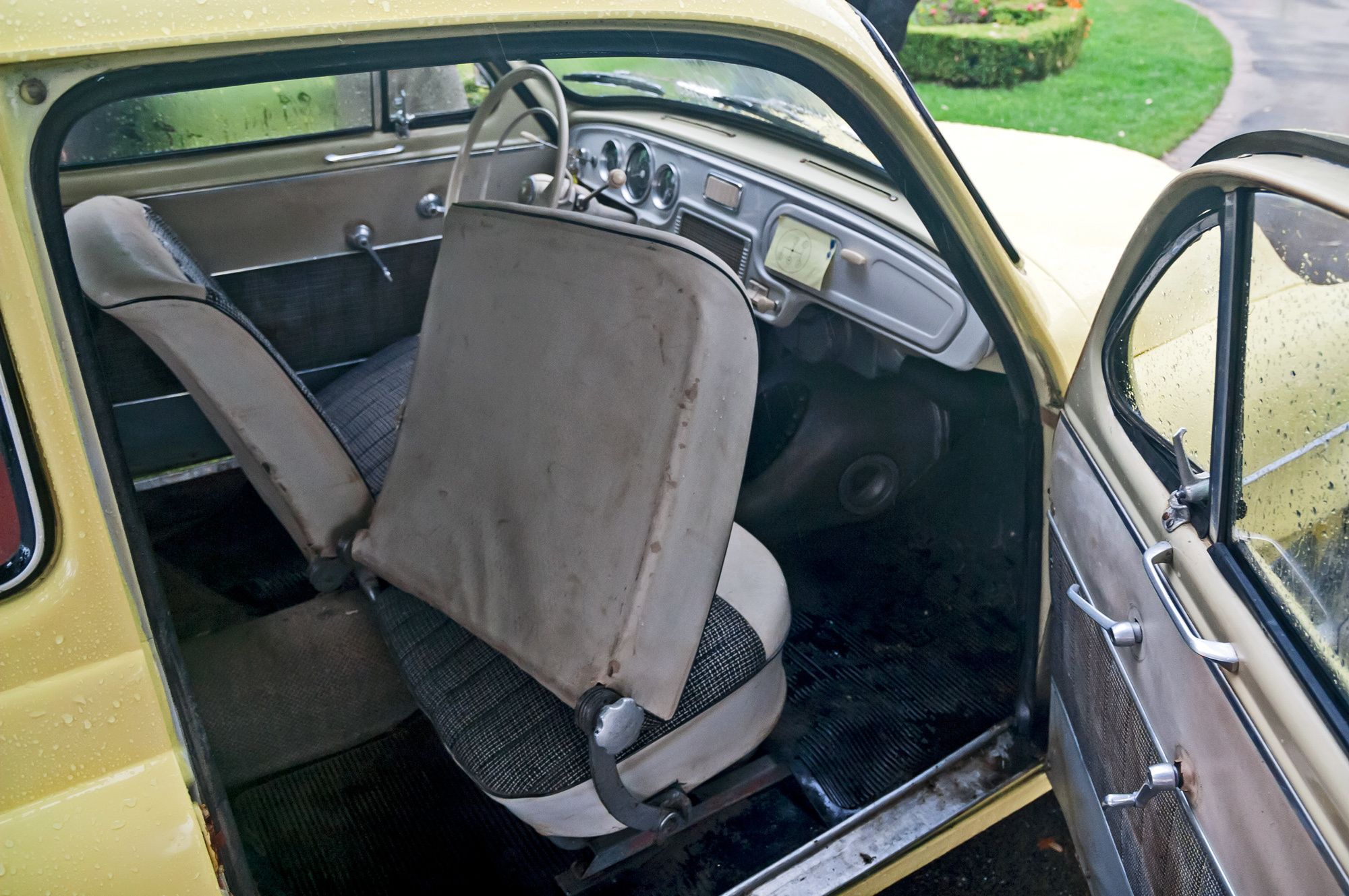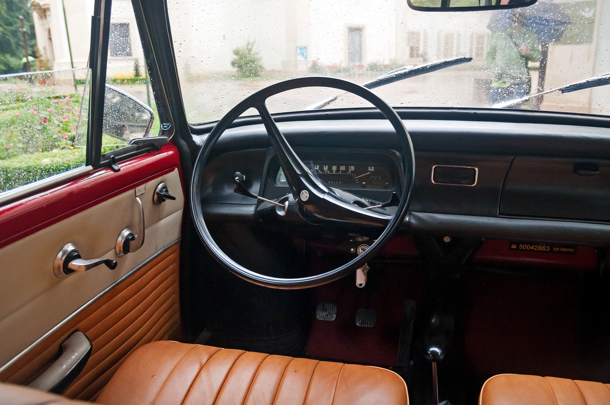 Литровая «четвёрка» (40 л.с.) и четырёхступенчатая коробка сюрпризов не принесли, зато удивили... стёкла! Всё боковое остекление открывается: и треугольные окошки, и водительское, и пассажирское окна, причём последнее опускается вместе со средней стойкой! Кроме того, на потолке, за спинами передних седоков, сделано крепление для ремней безопасности: когда те не используются, втыкаются туда. Задним пассажирам пристегнуться нечем.