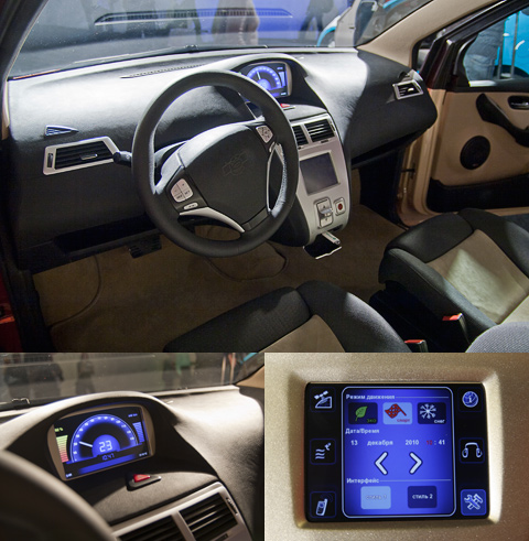 «Живые» машины производят внушительное впечатление. Все три (они совсем как на показанных ранее изображениях!) были спроектированы и сделаны за считанные месяцы. И выглядят очень добротно. На пилотных экземплярах будущего народного гибрида не экономили: в отделке использованы кожа, алькантара и качественный, «дорогой» на ощупь пластик.