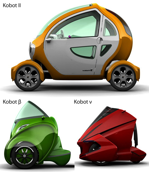 В выставочном комплексе в столице Японии было представлено сразу три концепта: Kobot ν (ню), Kobot β (бета) и Kobot II. У трёхколёсных машинок важное преимущество — они могут складываться пополам. Четырёхколёсная же «повозка» Kobot II, чем-то напоминающая Renault Twizy, также вполне практична. Для парковки ей хватит пространства всего в 1 м², при этом подозвать автомобильчик к себе можно посредством смартфона. Японцы утверждают, что их модели — не просто шоу-кары. Уже к 2013 году планируется наладить серийное производство причудливых транспортных средств.