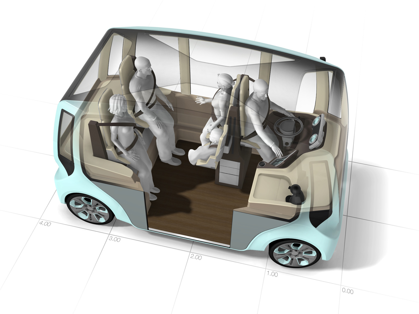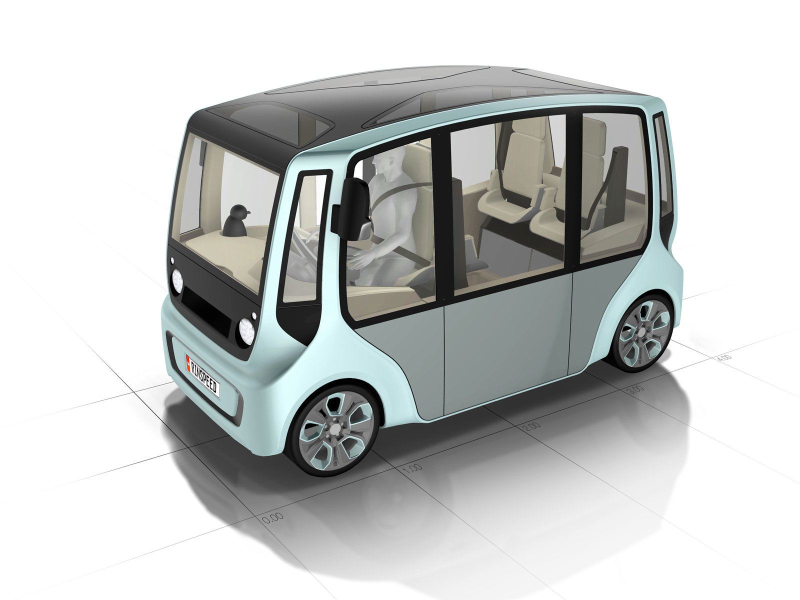 Главное достоинство автомобиля в его компактных размерах и экологичности. В длину концепт насчитывает 3,6 м, при этом без проблем в нём могут уместиться четверо взрослых и ребёнок. Стоит, правда, обратить внимание, что места для пассажиров, по сути, стоячие. Усовершенствовать автомобиль можно даже холодильником и кофемашиной. Планов по запуску модели в серию пока нет.