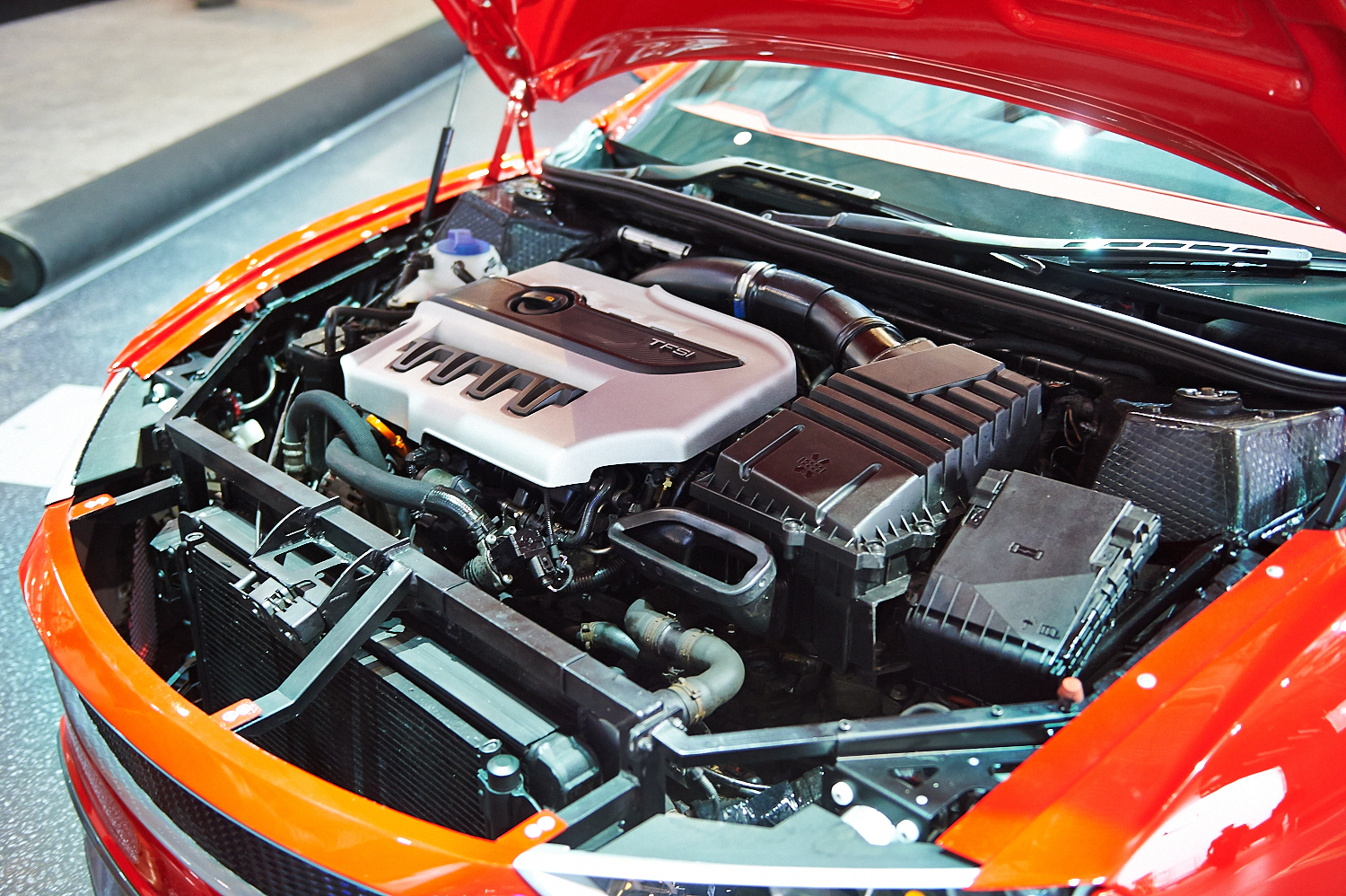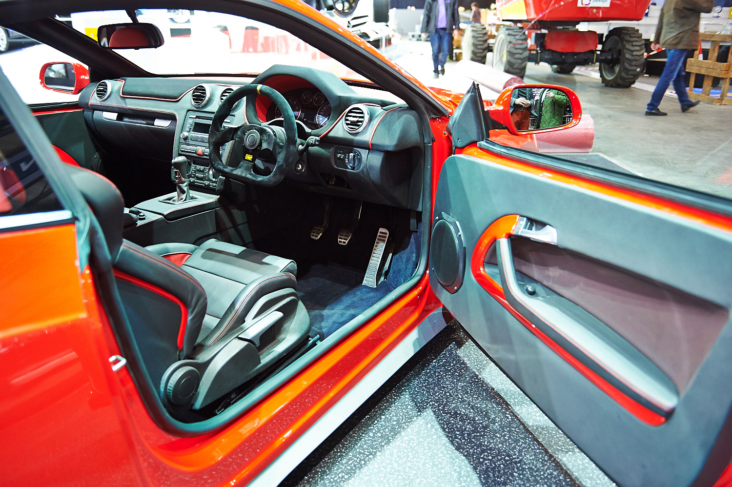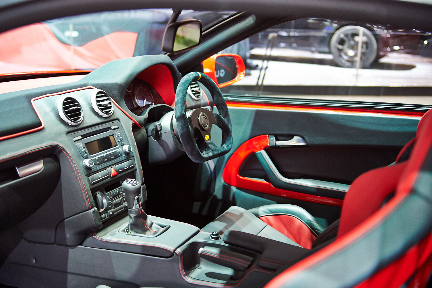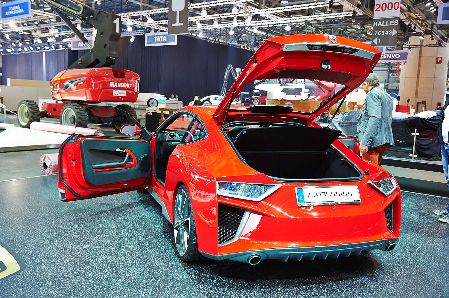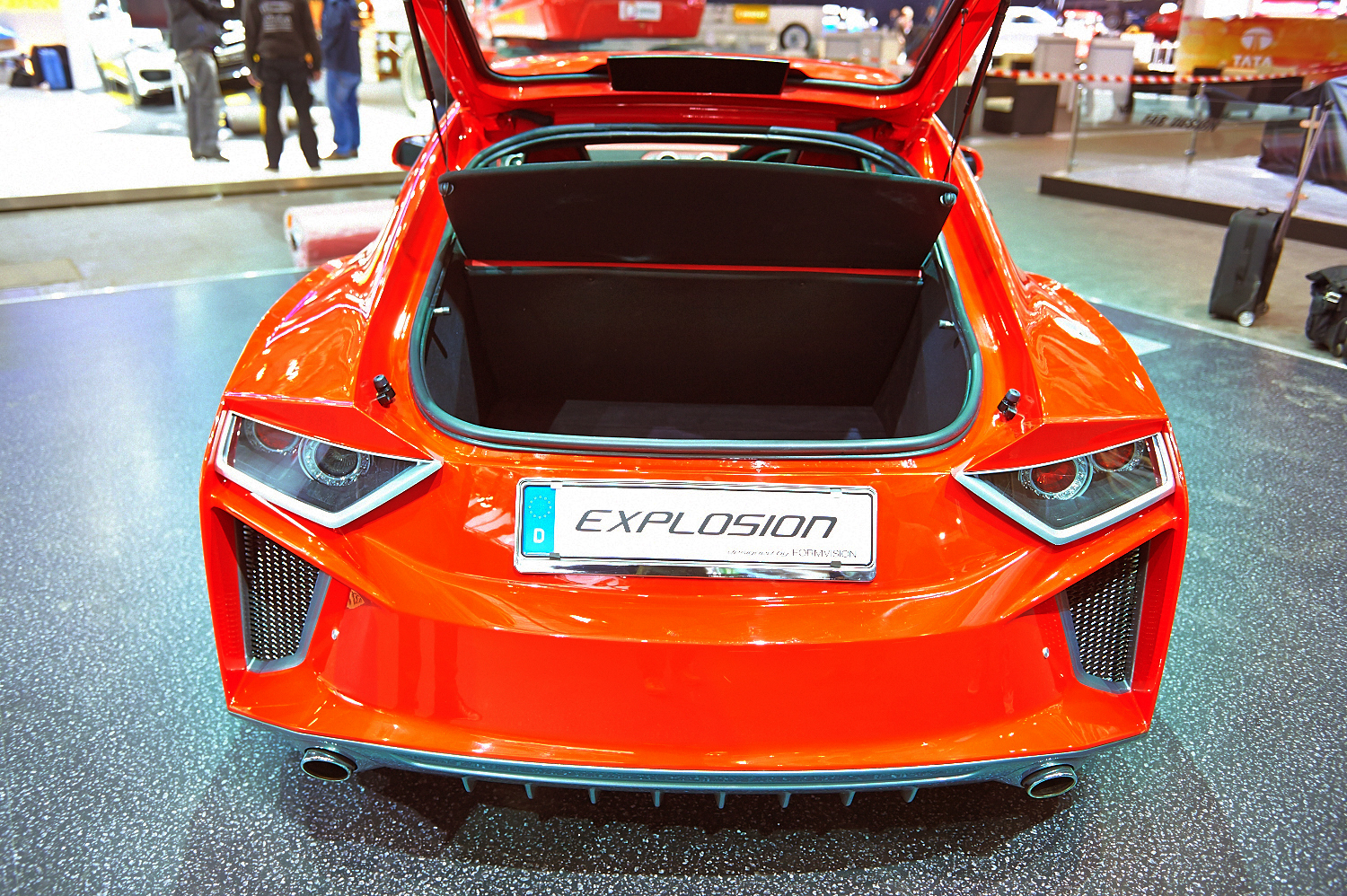Подобно Apollo, Gumpert Explosion построен вокруг хромомолибденовой трубчатой рамы, на которую навешены внешние панели из углепластика. Но только у Explosion — переднемоторная компоновка с поперечным расположением двигателя. Это рядная «турбочетвёрка» объёмом два литра с отдачей 420 л.с. и 520 Н•м. Коробки шестиступенчатые («механика» или «робот»), полный привод. Ничего не напоминает? Ассоциация с красующимся по соседству новым Audi TT напрашивается сама собой. Но нам удалось выяснить, что двигатель тут ещё от старого поколения «тэ-тэшки», хотя и форсированный (совпадение мощности с мощностью концепта TT quattro sport — только совпадение).