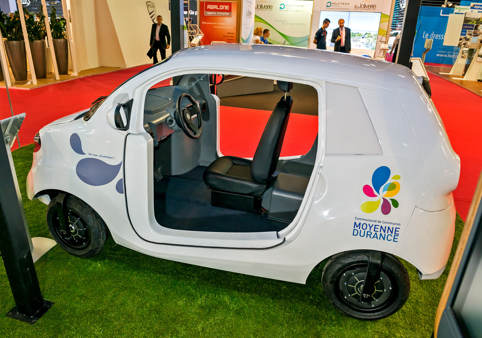 Пройти мимо этого экспоната Парижского автосалона было бы проще простого, если бы не бьющие по глазам «велосипедные» вилки колёс — и крупная фотография платформы, на которой построено сие транспортное средство. Какой автомобиль? Это же игрушка из детства! Эх, надо было патентовать тот кусочек фанерки, на котором мы с папой выращивали внедорожник, — ну точь-в-точь ведь «платформа» электрокара Weez. Разница в том, что здесь вместо фанеры — полипропилен, тяговая литий-железо-фосфатная батарея (ёмкостью 3 либо 5 кВт•ч), рычаги подвески — и аж четыре электромотора! Вилками эти мотор-колёса и крепятся.