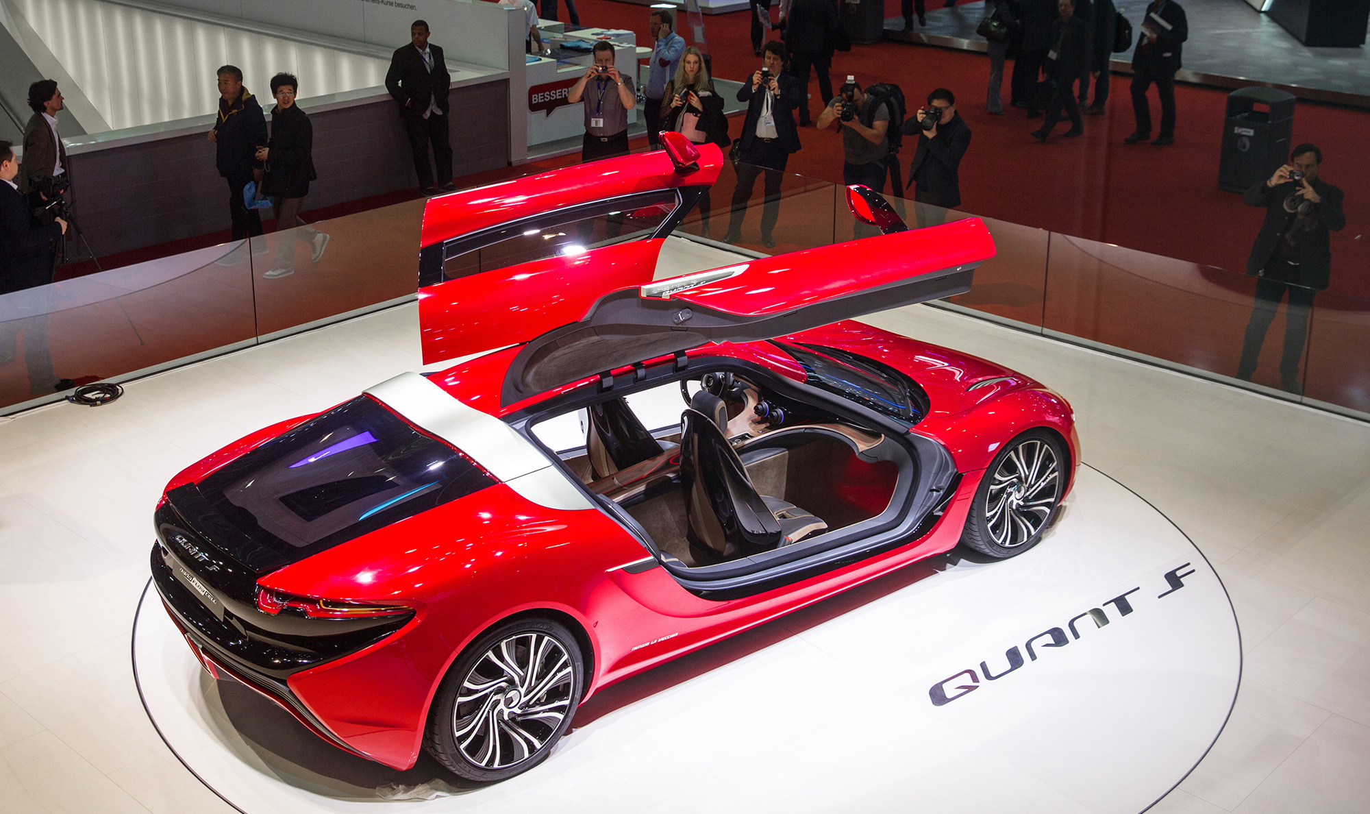 В Quant F разработчики нарастили объём баков для ионных жидкостей. Вместо суммарных 400 л — теперь 500 л. Пересмотренный блок суперконденсаторов получает от батареи ток до 50 А, а на моторы может кратковременно выдавать более 2000 А. Создатели концепта утверждают, что им не знакома ни одна электрическая легковушка, где фигурировали бы столь большие токи. Напряжение в системе привода тоже внушительное: кратковременно его теперь можно повышать до 735 В (было 600). В долговременном режиме оно ограничено 400 вольтами.