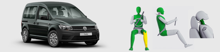 Вся передняя кромка капота Caddy опасна для пешехода. А вот детей машина защитила неплохо. Лишь нагрузки на шею трёхлетнего малыша вышли из зелёной зоны в жёлтую. Прекрасной признана защита при ударе сзади и боковом столкновении с другой машиной. Однако разочаровало испытание с ударом автомобиля о столб. Нагрузки на торс манекена были на адекватном уровне (жёлтый цвет на условной схеме), но при этом между средней стойкой и задней дверцей образовался разрыв, за который судьи оштрафовали модель. Наверное, потому хорошо отработавшее автоматические торможение на трассовых скоростях, система стабилизации и другие электронные штучки не смогли вытянуть вэн до пятизвёздочного рейтинга.