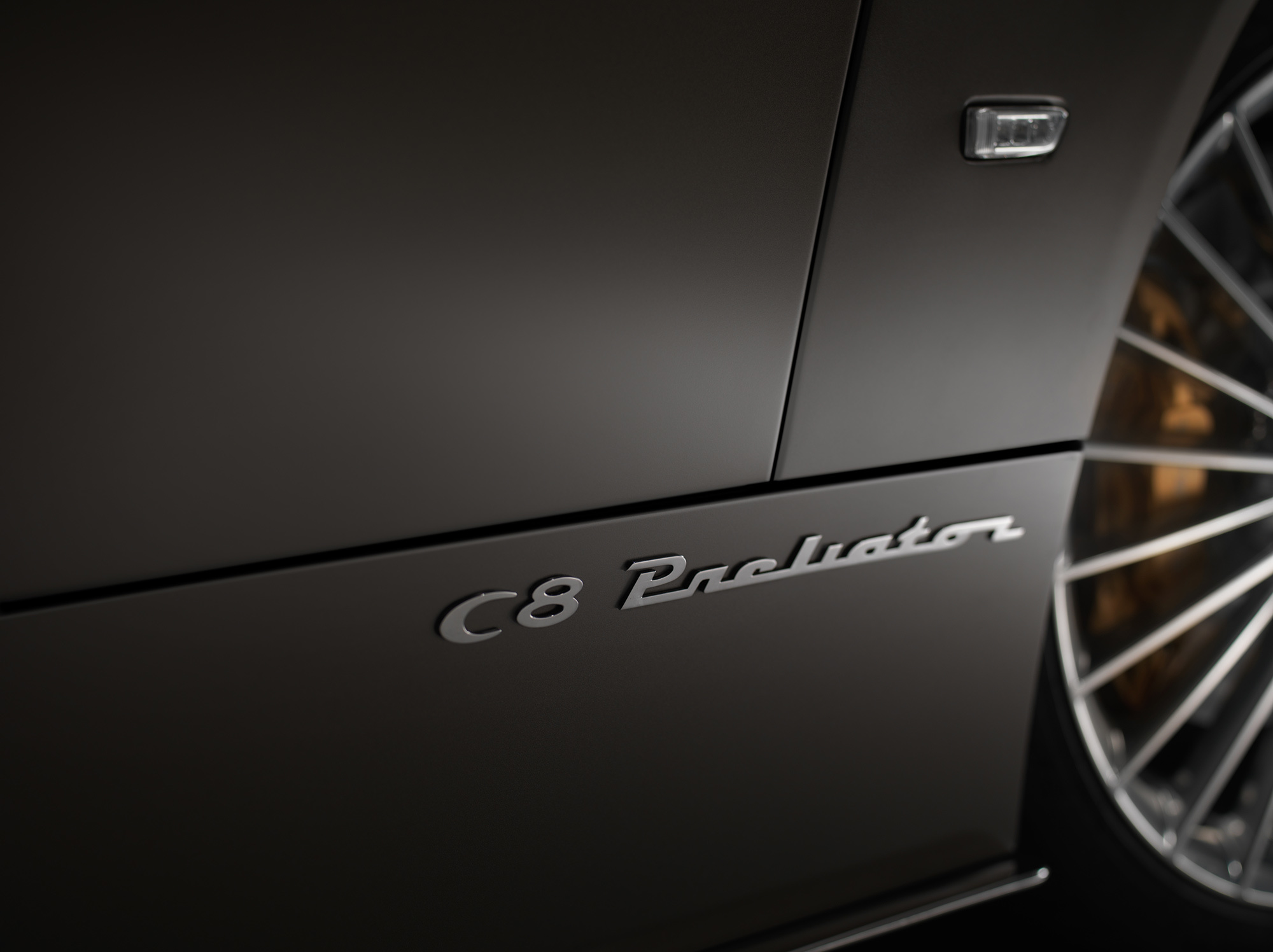 Вместо концептуального электрокара британцы привезли в Женеву серийное заднеприводное купе Spyker C8 Preliator с бензиновым мотором от «четырёх колец». Двигатель V8 4.2 FSI благодаря компрессору выдаёт 532 л.с. (6800 об/мин), 600 Н•м (с 3500 оборотов) и работает в паре с шестиступенчатыми коробками: «механикой» Getrag и «автоматом» ZF с подрулевыми переключателями. Машина достигает сотни за 3,7 с и разгоняется до 322 км/ч. Спорткар будет выпущен тиражом 50 экземпляров. Двухпедальная версия оценена в 330 990 евро, «ручная» стоит от 324 900.