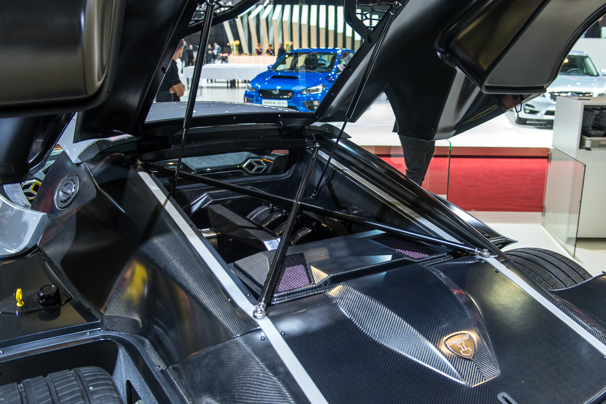Сюрпризом оказался мотор. Если предшественник довольствовался агрегатом GM V8 6.8, снабжённым приводным компрессором и турбонагнетателем (1119 л.с. и 1430 Н•м), то для новой модели датчане создали свой собственный двигатель V8 5.9 c двумя механическими нагнетателями (буквы TS в названии модели — это twin supercharger), впускными коллекторами из углепластика и плоским коленчатым валом (то есть все его кривошипы лежат в одной плоскости), заимствованным из мира автоспорта.