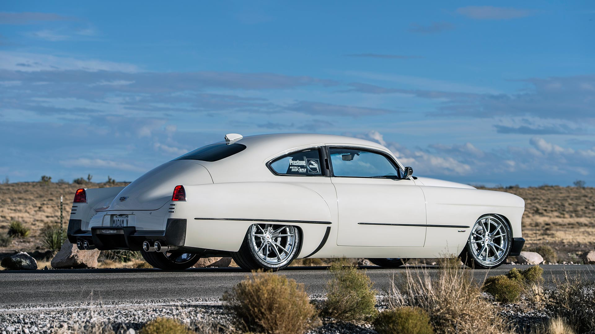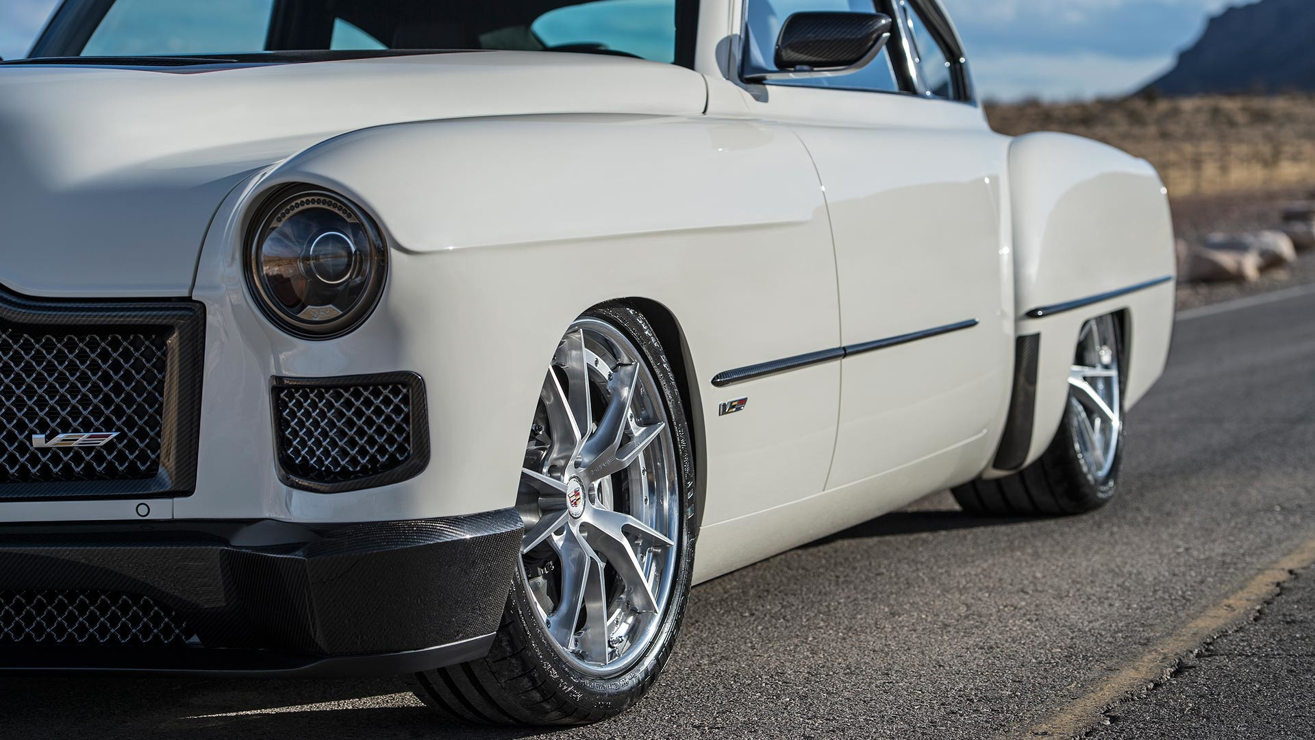 Под композитной оболочкой скрываются каркас и техническая начинка, заимствованные у пары седанов Cadillac ATS-V (две машины понадобились потому, что послевоенный прообраз — длиннее). Ножницы по металлу, сварка — и вот уже донора не узнать. При этом мотор V6 3.6 Twin Turbo остался штатным, 470-сильным (601 Н•м). Дополняют его восьмидиапазонный «автомат» и адаптивная подвеска Magnetic Ride Control.