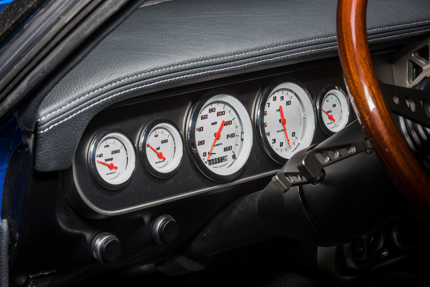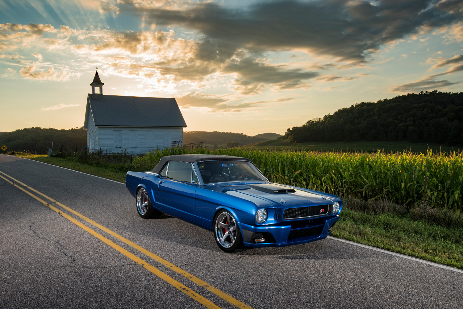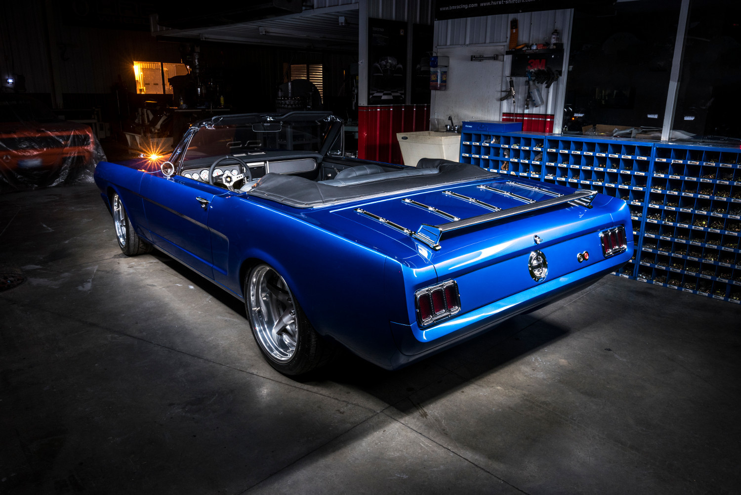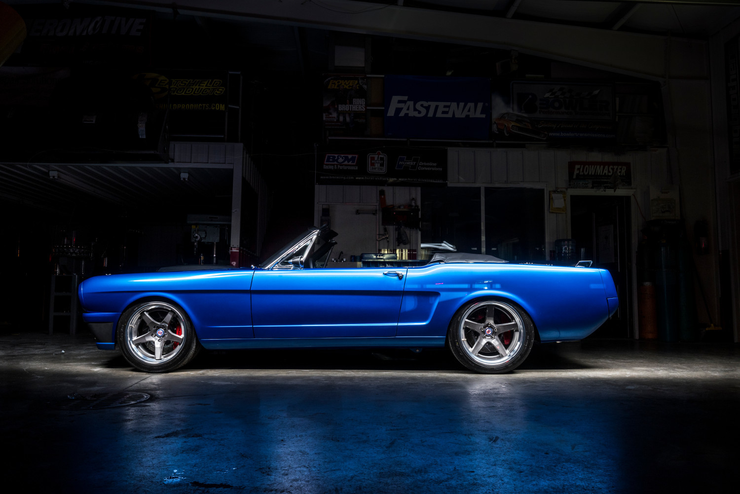 В 2016 году в Вегасе можно увидеть ещё пару примеров смешения разных эпох, столь любимого компанией Ringbrothers. Это кабриолет Mustang 1965 года, снабжённый рядом кузовных деталей из углепластика и окрашенный в насыщенный синий колер Blu By U от BASF. Колёсные диски от HRE (18 и 19 дюймов), шины Nitto Invo, коробка передач Tremec, углепластиковый карданный вал, выхлопная система Flowmaster, усиленный каркас кузова дополняют изменения. При этом салон сохранил дух 1960-х. Данная машина как и большинство изделий Ringbrothers построена под конкретного клиента.