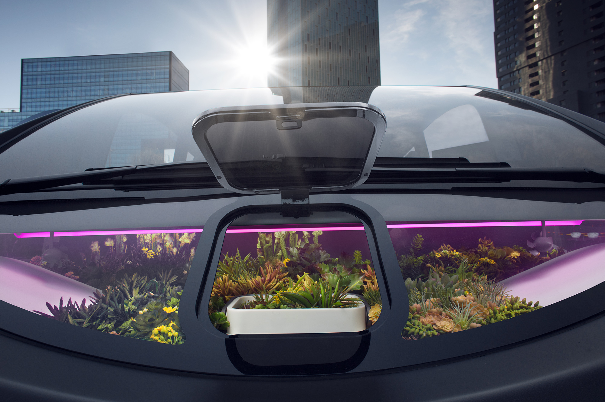 Нынче в моде, чтобы на борту «зелёной» машины присутствовала живая растительность, к примеру, лишайник. В стеклянном носу Оазиса можно обустроить небольшой огород: посадить в горшочках редис, миниатюрные деревья бонсай и тому подобное. «Садовый участок на колёсах для городских джунглей», однако, не входит в рабочую зону стеклоочистителей, придётся протирать стекло тряпкой. Гидропоника с автоматическими режимами здесь, впрочем, на хорошем уровне.
