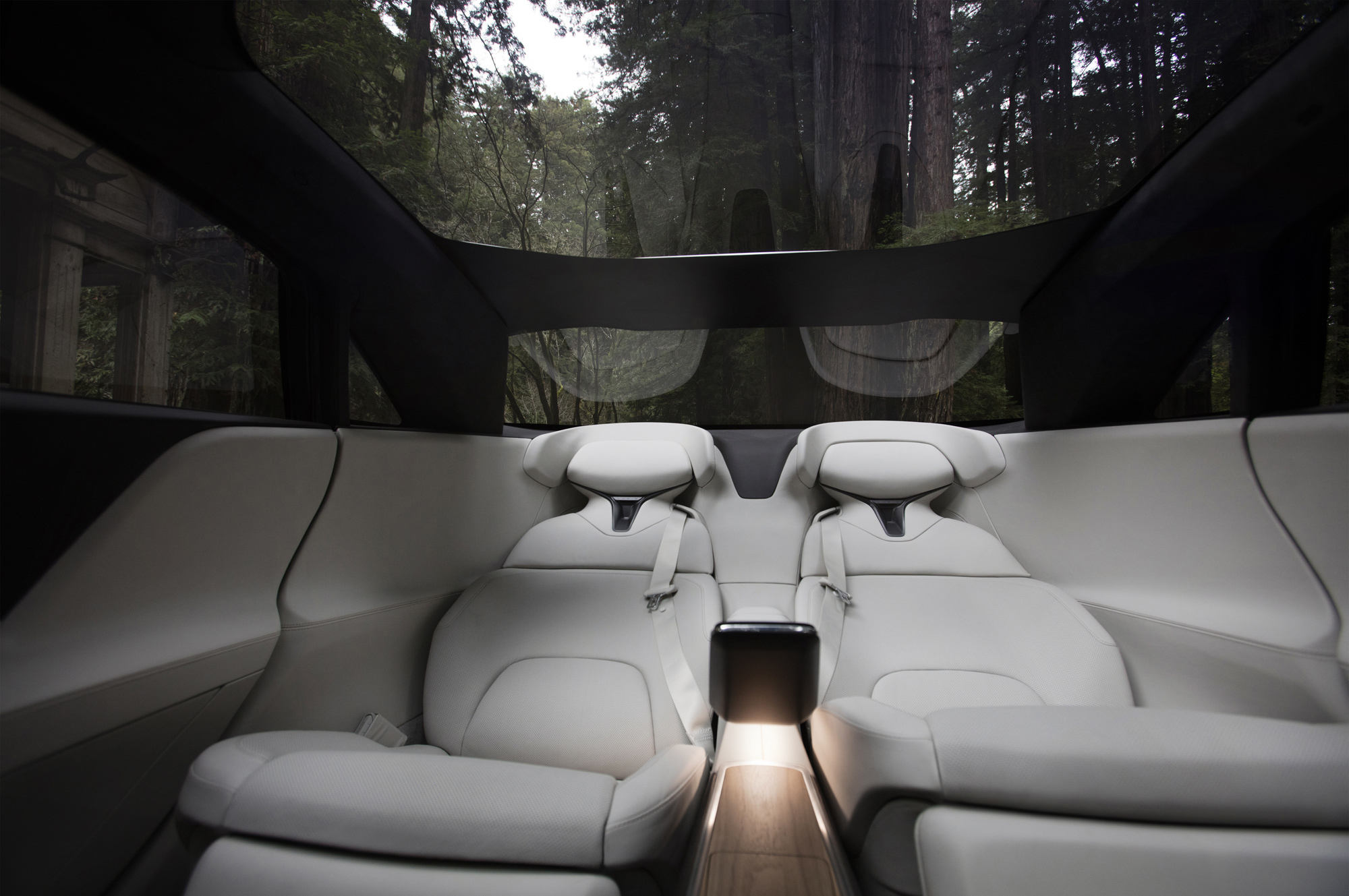 Задние раздельные кресла в седане могут наклонять свои спинки на угол до 55 градусов. Вообще, дизайнеры предусмотрели несколько версий салона, в том числе с задним диваном (такой, видимо будет установлен в базовой комплектации). Неизвестно, сделана ли на предсерийном образце стеклянная крыша действительно электрохромной, однако, по замыслу разработчиков, у Air именно такой она и будет.