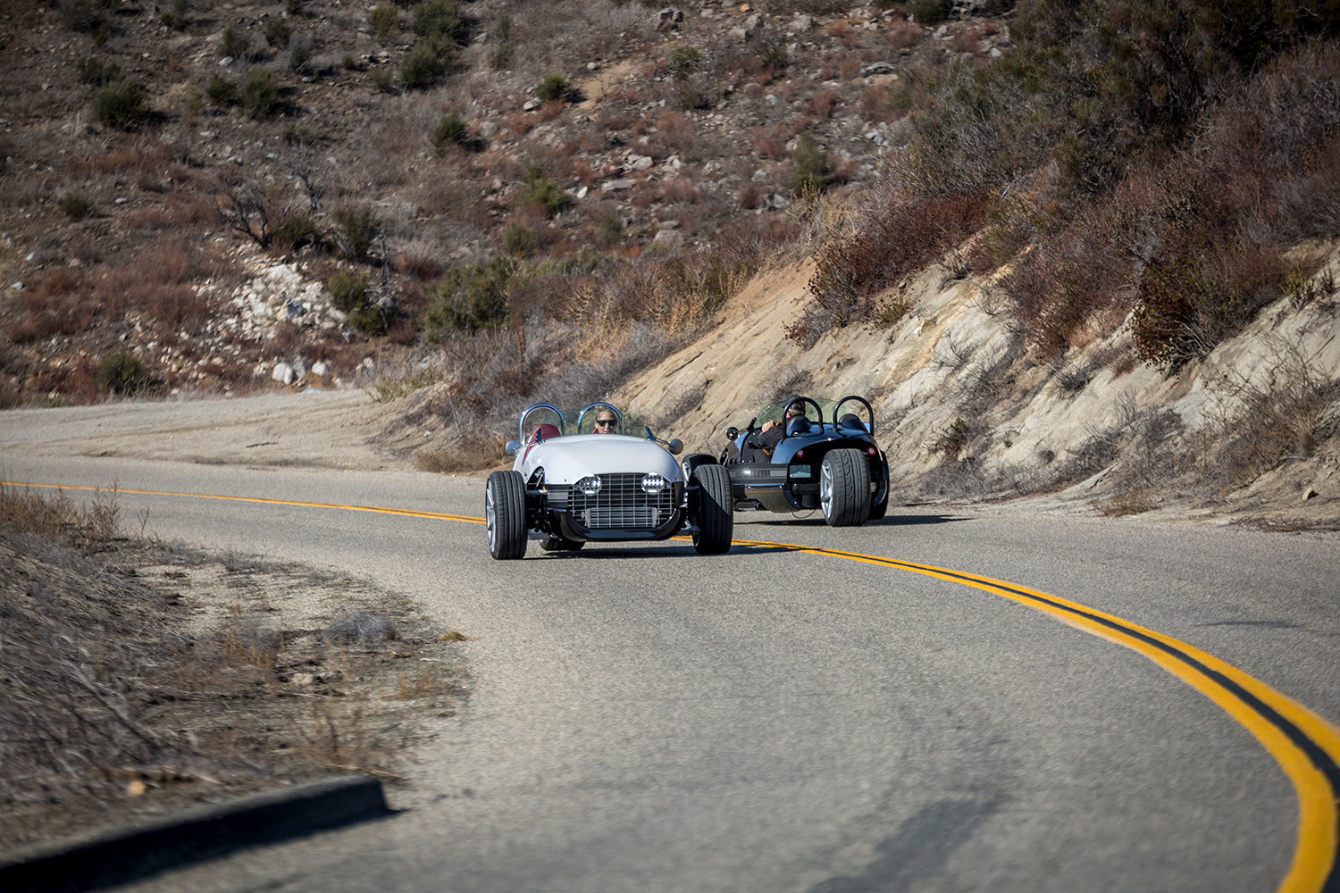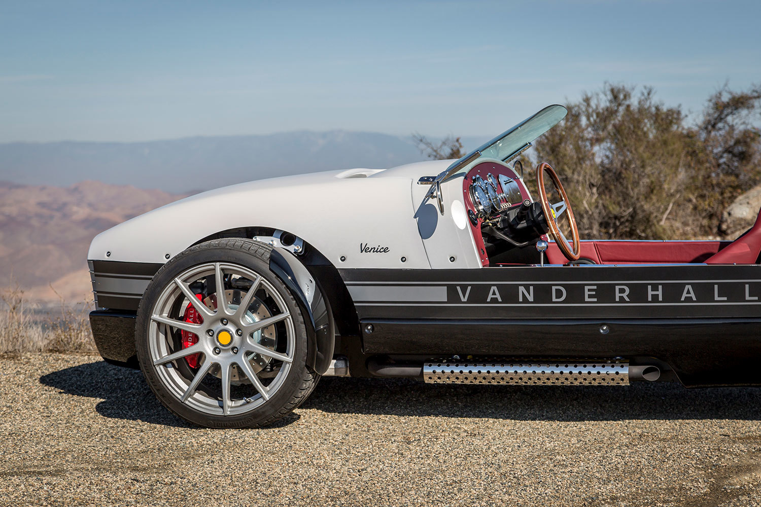 Компания Vanderhall Motor Works, базирующаяся в городе Прово (штат Юта), начала строить трициклы в 2010 году. За первым прототипом с двигателем от мотоцикла Kawasaki последовали ещё шесть опытных образцов. В 2015-м наконец-то родилась серийная модель Vanderhall Laguna (видео), оснащённая бензиновой «турбочетвёркой» 1.4 VVTi (203 л.с., 271 Н•м) производства GM и шестиступенчатым «автоматом». Машинка стоит дороговато — от $49 950. Теперь у неё появилась более доступная сестричка по имени Venice, которую американцы готовы отдать за $29 950 (1,8 млн рублей).
