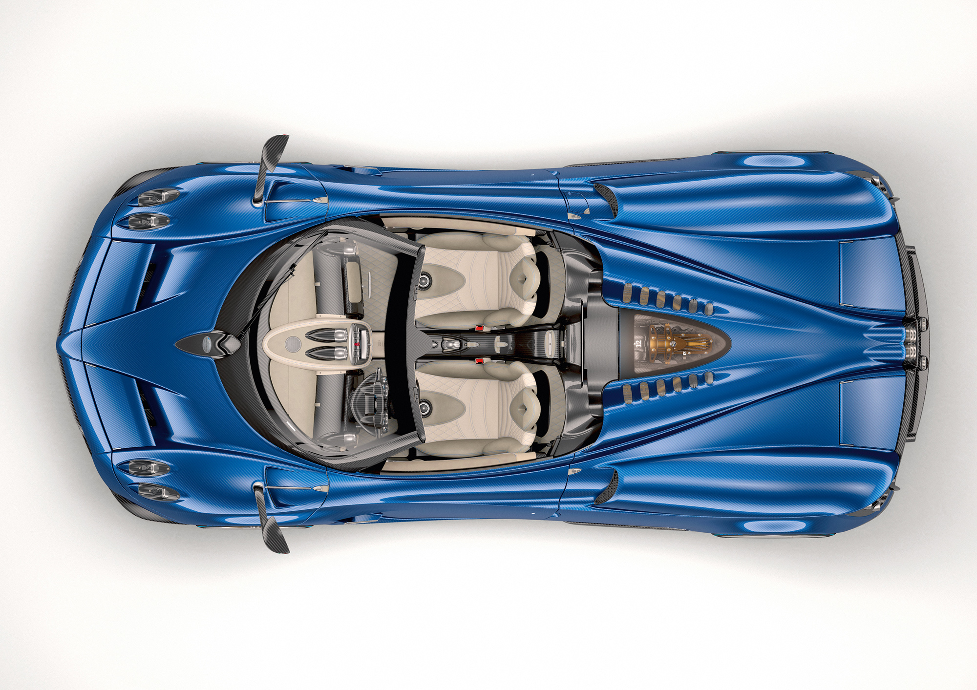 Наддувный агрегат Mercedes-AMG V12 6.0 M158 выдаёт здесь 764 л.с. (+34 к купе) и 1000 Н•м (паритет). Позднее наверняка выйдет открытая версия и «заряженной» Уайры BC. И если купе с инициалами Бенни Кайолы обладало 800-сильным мотором, то аналогичный родстер получится никак не менее мощным, а скорее, более производительным. На родстере также применён новый семиступенчатый робот с углепластиковыми синхронизаторами от компании X-Track, впервые появившийся на купе Huayra BC (эта коробка на 40% легче предыдущей). Далее тяга идёт на заднюю ось через дифференциал с электронной блокировкой.