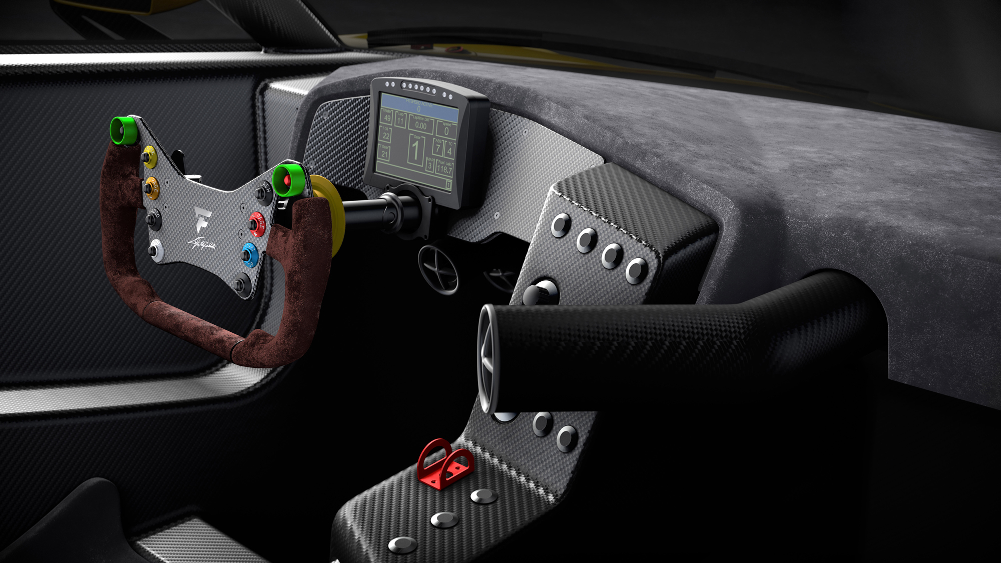 Ради снижения массы двухдверки инженеры отказались от регулируемых сидений. Каждый заказчик будет приглашён в HWA для создания индивидуального кресла под его комплекцию. Оно обеспечит владельцу оптимальный обзор дороги. Вне зависимости от роста, у всех водителей EF7 этот параметр окажется одинаковым, Эмерсон считает это важным. Вдобавок тут регулируются педальный узел и, конечно, руль.