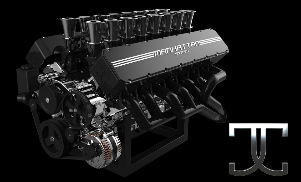 Шесть лет назад фирма Godsil Motorcars собиралась строить электрокар, но страсть Джейсона к большим американским автомобилям с монструозными моторами победила. Технический директор Стивен Чу ранее работал в компании Katech, которая как раз поставляет такие двигатели GM. В итоге выбор пал на 16-цилиндровый агрегат объёмом 13 литров и мощностью около 1000 сил. В 2013 году окончательно оформилась ещё одна идея — Manhattan V16 должен питаться природным газом.