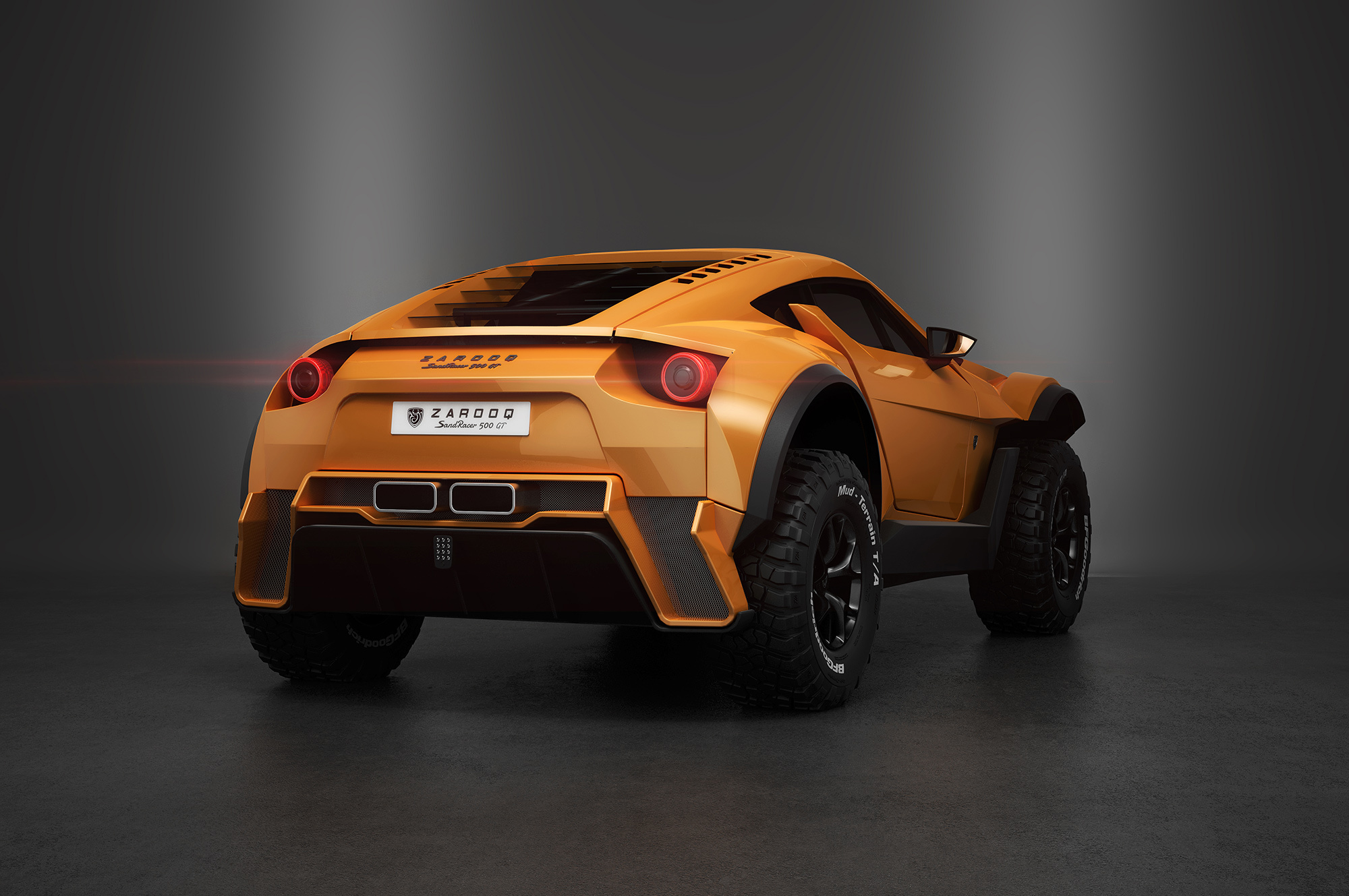 Двухместный SandRacer 500 GT — среднемоторный внедорожник строго с задним приводом. «Шестёрка» 3.5 (308 л.с., 371 Н•м) вместе с шестиступенчатым «автоматом» отправлена в отставку. Нынче силовой агрегат включает двигатель V8 6.2 (525 л.с., 660 Н•м) и секвентальную коробку. Максимальная скорость — 220 км/ч. Останавливают машину вентилируемые дисковые тормоза с шестипоршневыми суппортами. В салоне от бюро Mansory обещаны сиденья и руль, отделанные углеволокном, цифровая приборная панель, климат-контроль, медиацентр с поддержкой Apple CarPlay, электрические стеклоподъёмники и многое другое. Zarooq Motors надеется заинтересовать покупателей как в странах Персидского залива, так и в Европе.