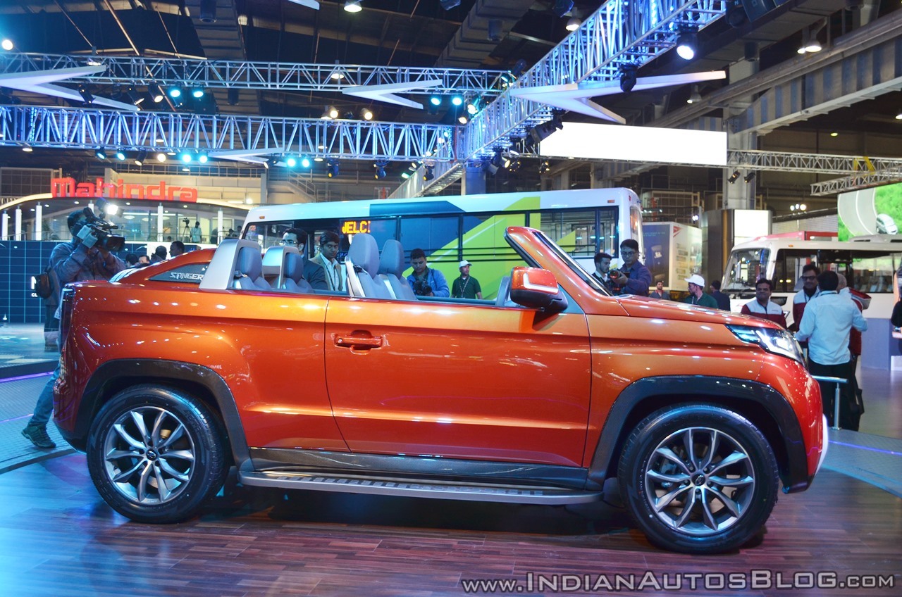 Компания Mahindra представила на выставке Auto Expo в Нью-Дели шоу-кар TUV Stinger — первый индийский кросс-кабриолет. Прототип построен на основе модели Mahindra TUV300, но сильно отличается от неё не только отсутствием крыши и «лишних» дверей. Дизайн экстерьера и салона основательно перекроен. Вместо мотора 1.5 (84 л.с., 230 Н•м) Стингеру выдали турбодизель mHawk 2.2 (140 л.с., 320 Н•м) от внедорожника Scorpio. Есть ли полный привод, не сообщается.