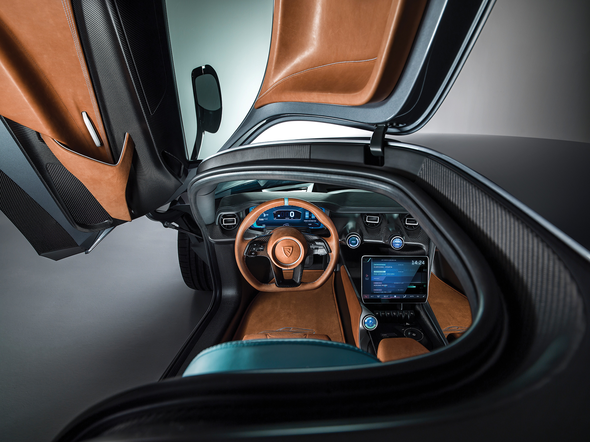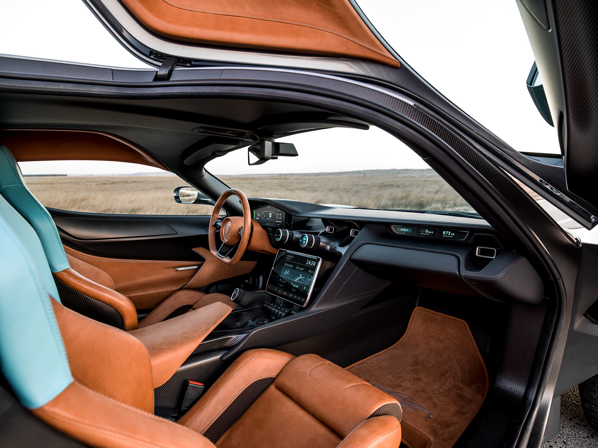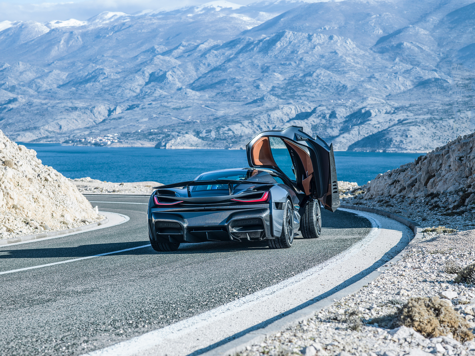 Такие характеристики новому купе обеспечивают четыре электромотора (по одному на колесо) с суммарной отдачей 1914 л.с. и 2300 Н•м. Причём второй параметр указан именно для самих двигателей, а если учесть понижающие редукторы между ними и колёсами, то максимальная тяга на старте равна 17 047 Н•м. При этом в купе есть электроника, меняющая баланс тяги между передней и задней осями, равно как правым и левым бортом.