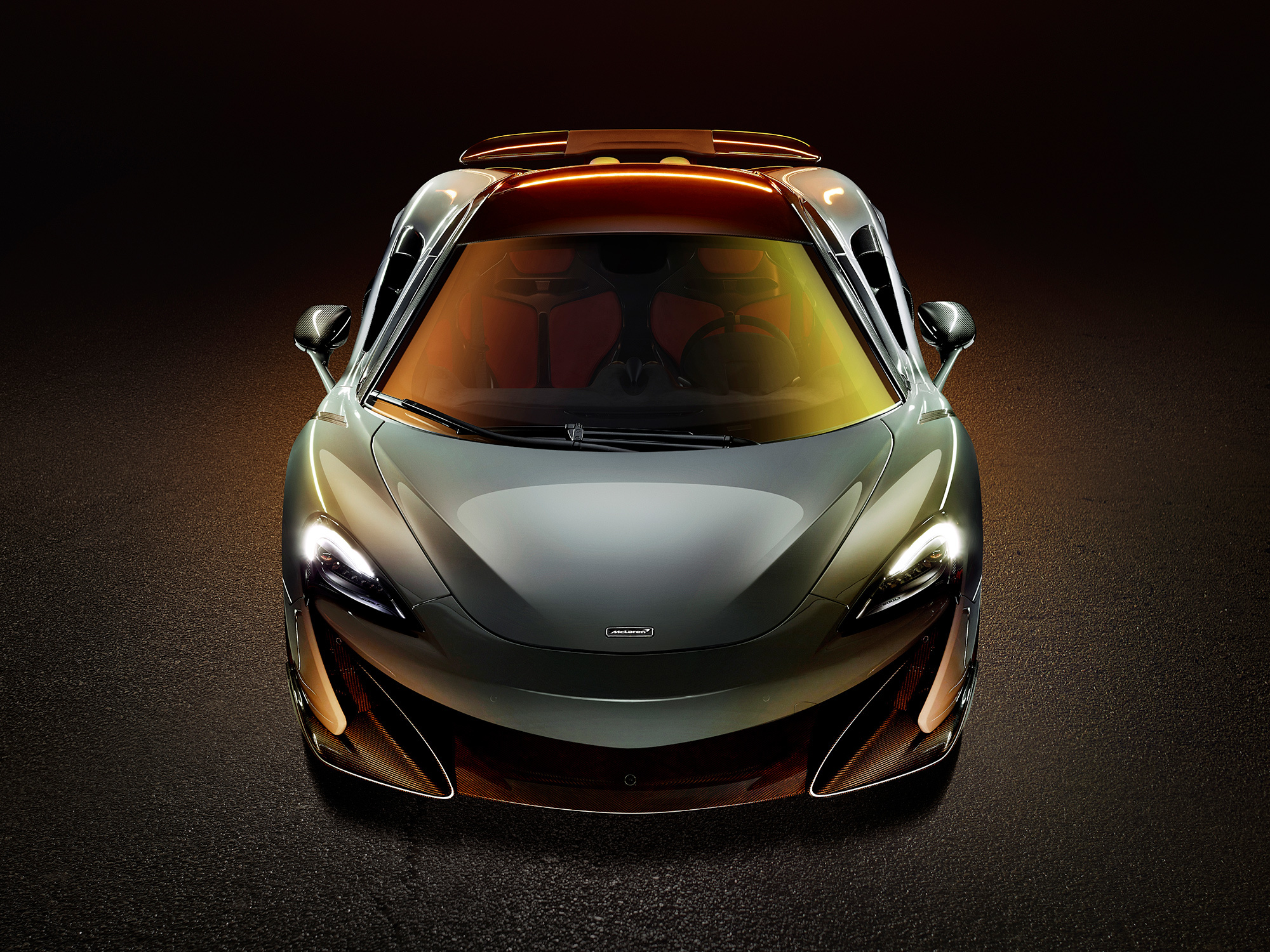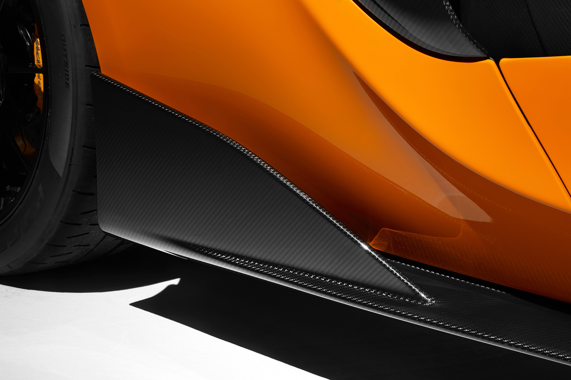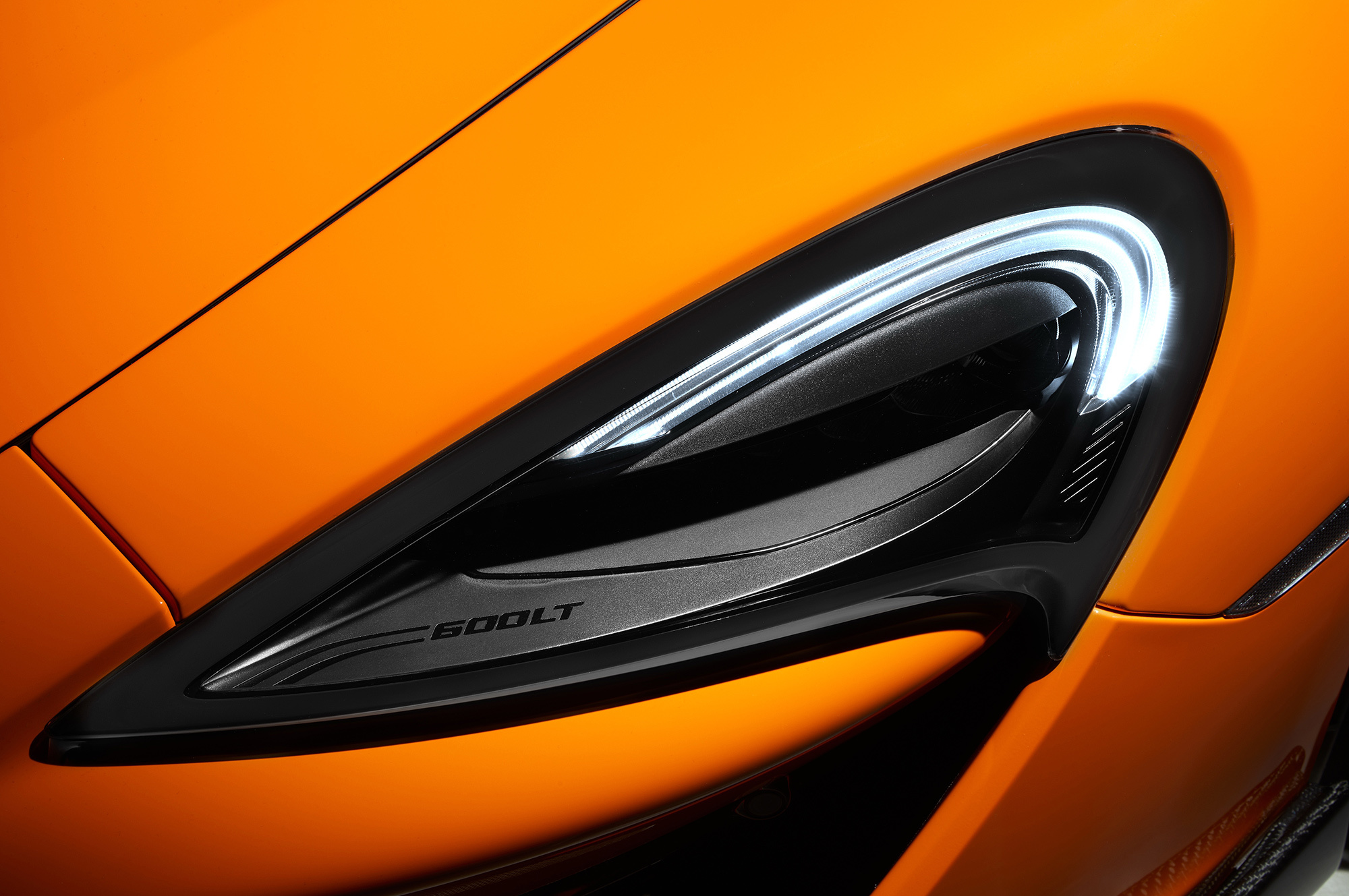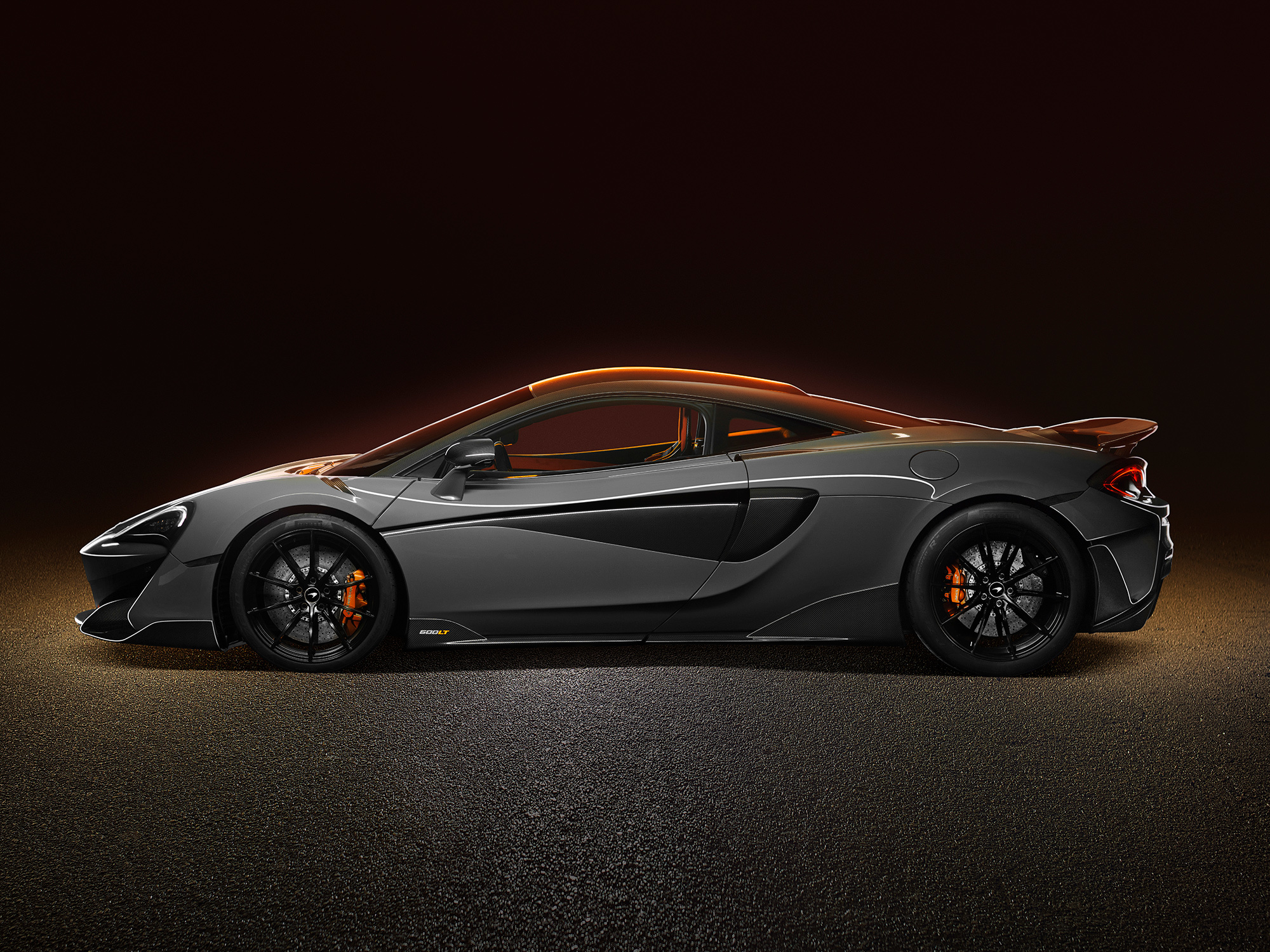 Углепластиковый монокок здесь накрыт по большей части композитными панелями, а не алюминиевыми, как у модели 570S. Также расширена отделка салона углеволокном, из которого сделаны и облегчённые гоночные кресла. В итоге снаряжённая масса купе 600LT составляет 1356 кг против 1452 у донора. Кроме того, у «шестисотки» более совершенная аэродинамика: благодаря новым внешним панелям и полностью плоскому углепластиковому днищу на 250 км/ч прижимная сила достигает 100 кг. Максимальная же скорость у 600LT равняется 328 км/ч. При этом до сотни суперкар выстреливает за 2,9 с, а до 200 км/ч ― за 8,2. Аналогичные показатели у Макларена 570S ― 3,2 и 9,5 с. А вот скоростной потолок такой же.